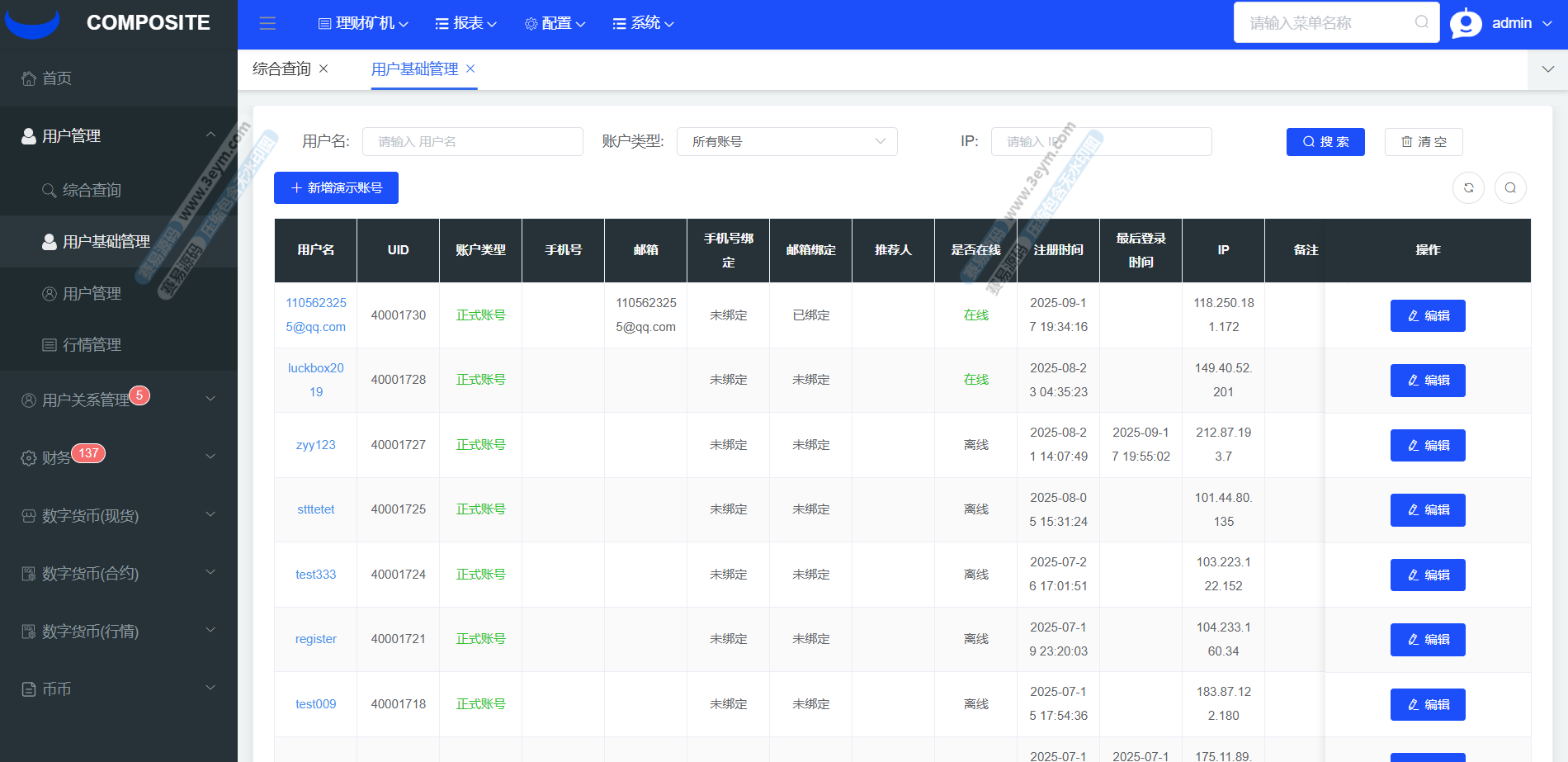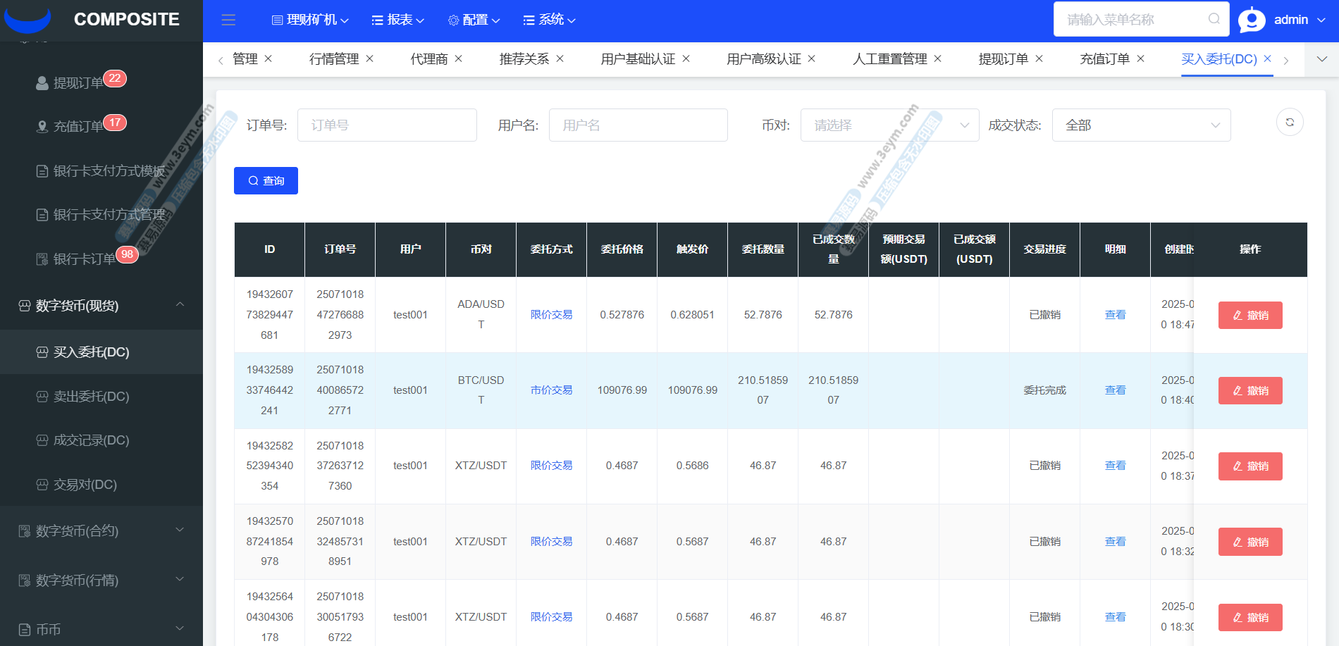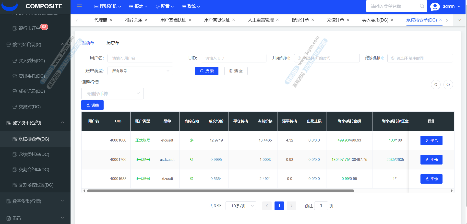系统分为:永续、闪期权、交易撮合、市场行情、机器人、代理商系统、控盘系统;