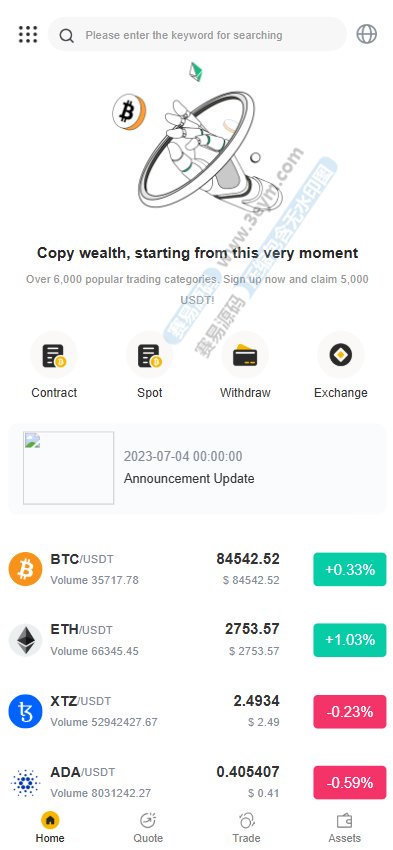 系统包含web端、原生的ios 和 安卓APP,H5。买这套源码送另外一套同款tradedady交易所源码。