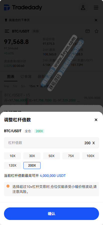 合约交易功能允许用户进行期货交易,包括多种类型的合约:永续合约、交割合约和期权合约。用户可以通过杠杆放大收益,也可以通过做空策略在市场下跌时获取利润。系统提供实时的保证金调整、杠杆倍率选择以及预警提醒功能,帮助用户更好地管理风险。- 高杠杆支持:平台提供多种杠杆选项,用户可以选择从1x到最大50x的杠杆,以适应不同的风险偏好和市场环境。