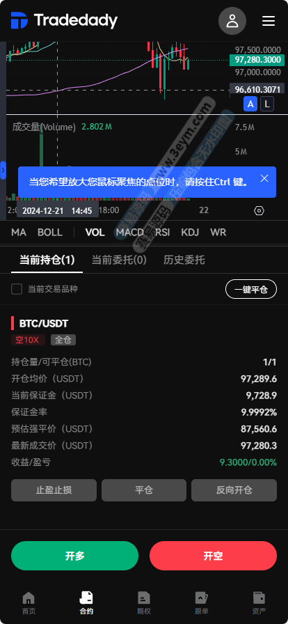- 止盈止损功能:用户可以在开仓时设置止盈止损点,确保在市场不利时自动平仓,锁定收益或减少损失。