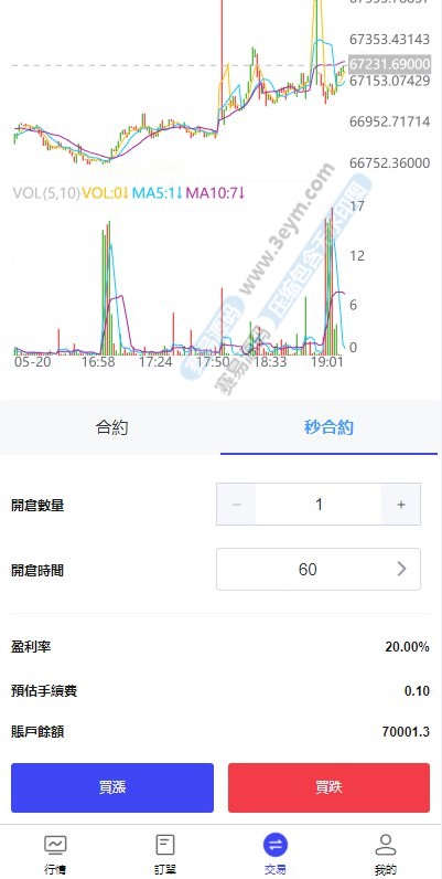 经测试全部币种k线可控制,设置上涨下跌浮点,