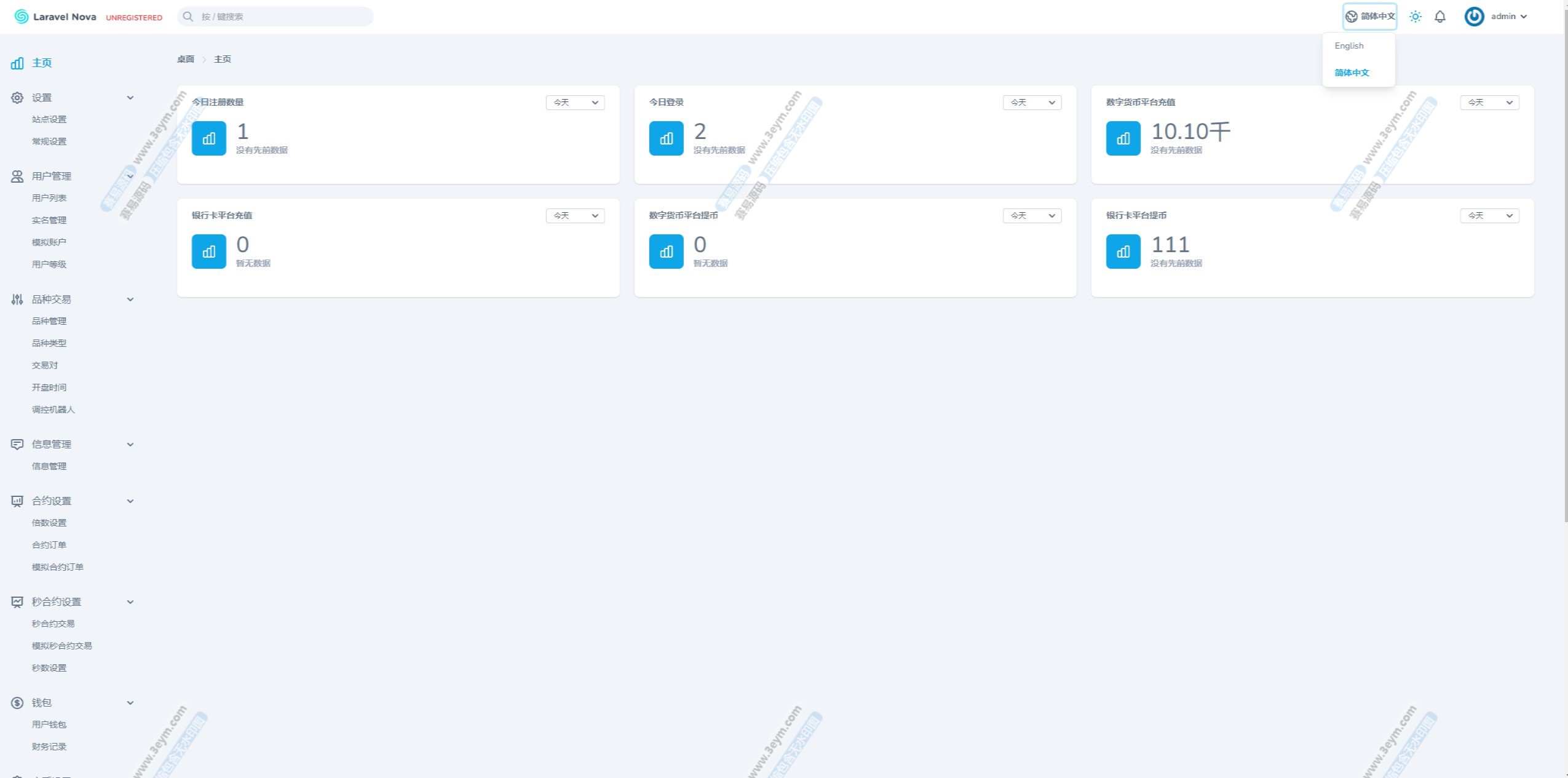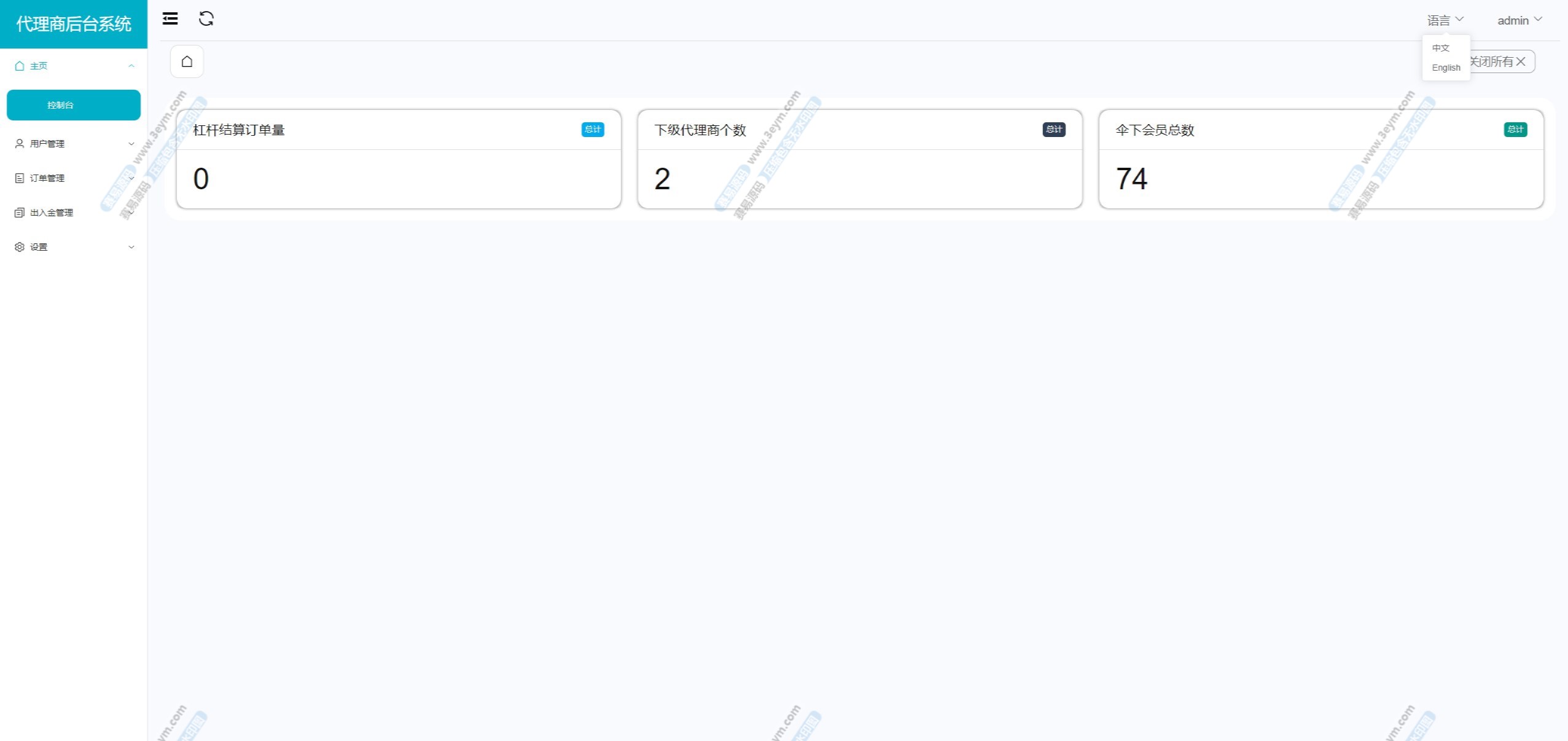 8. 后台和代理后台都可中英文切换