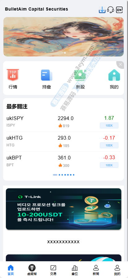 此版本为客户定制二开版本 修复了股票源码优化多处问题 增加各国接口同步 行情数据更加稳定 添加了美股 英股 全球指数 黄金 外汇数据