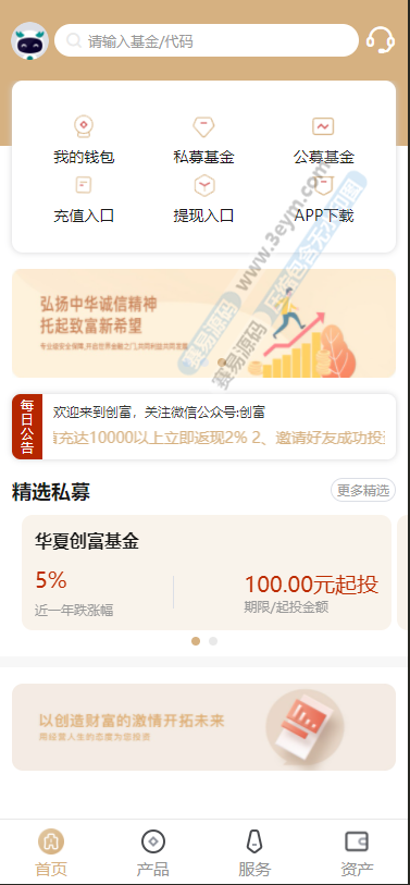 金色UI创富基金股票源码/股票源码/项目投资理财源码/产品认购/前端Uniapp+后端php