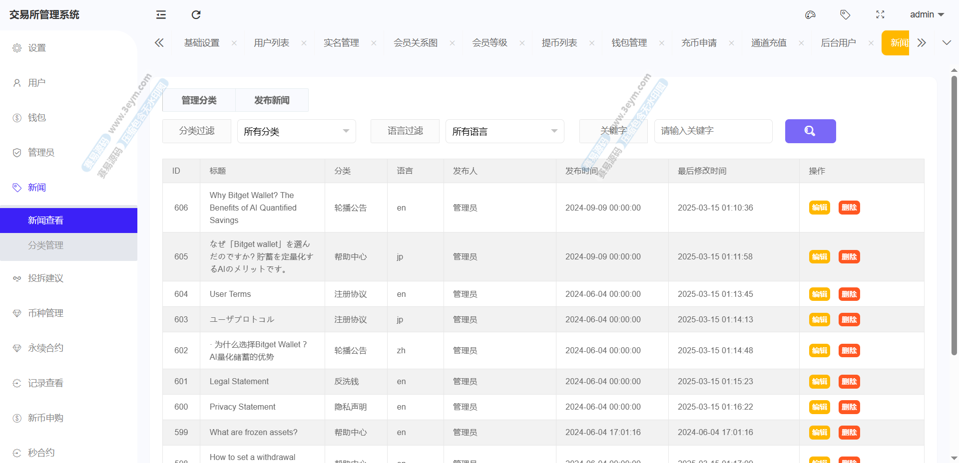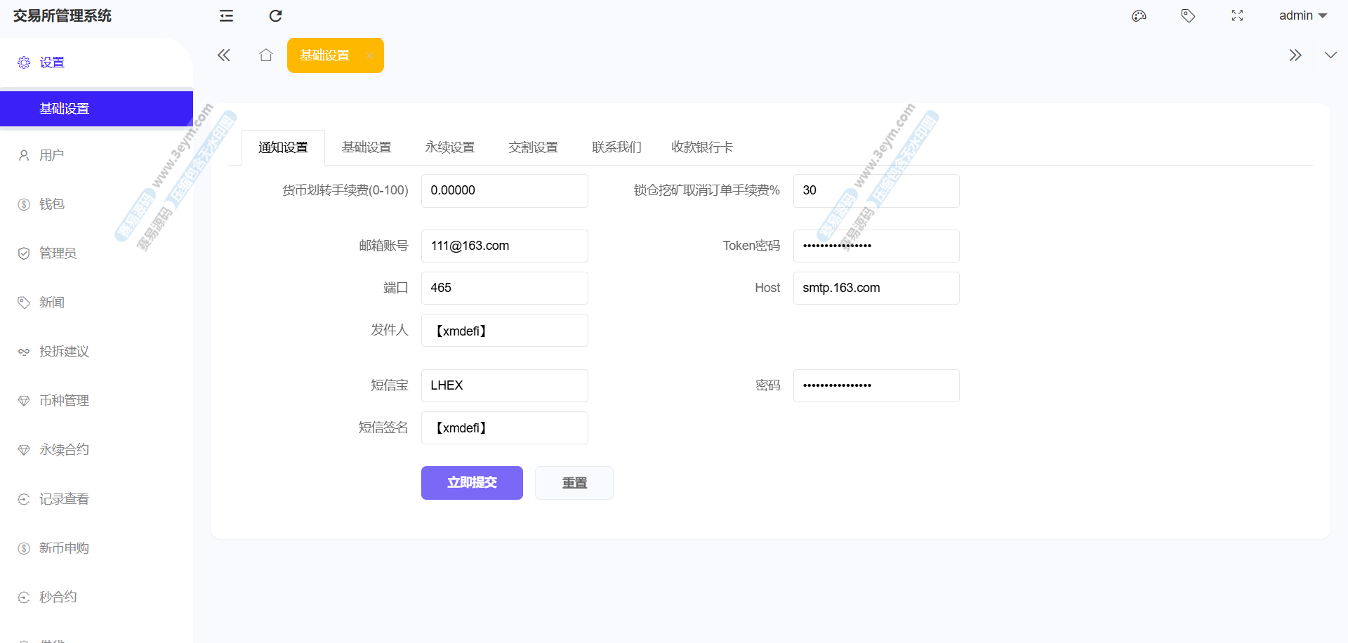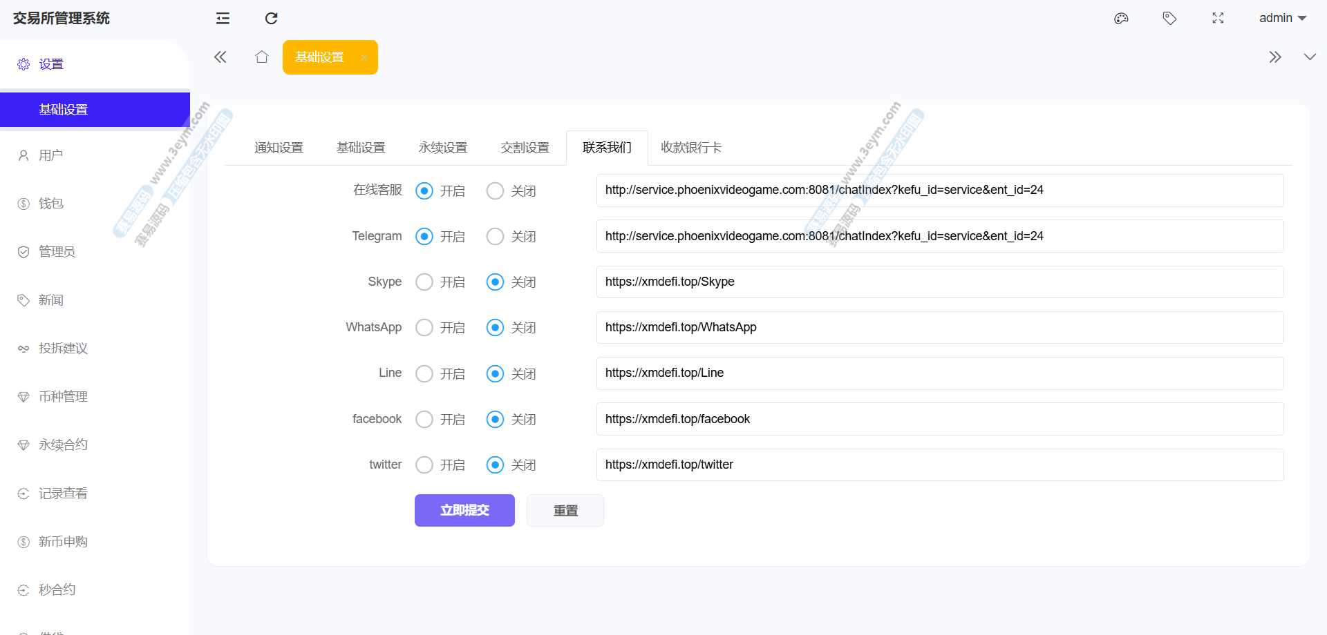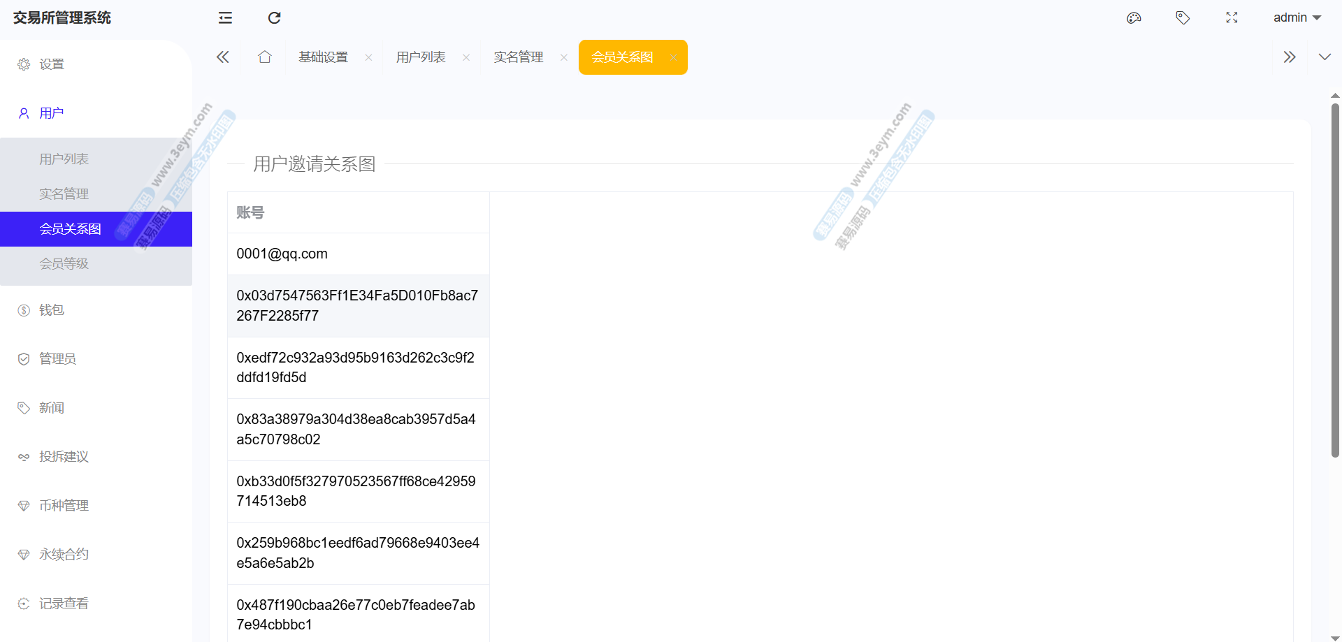 存款功能支持 USDT 存款,提供 ERC20 和 TRC20 两种链类型的选择,生成对应的存款二维码和钱包地址,方便用户进行资金充值。