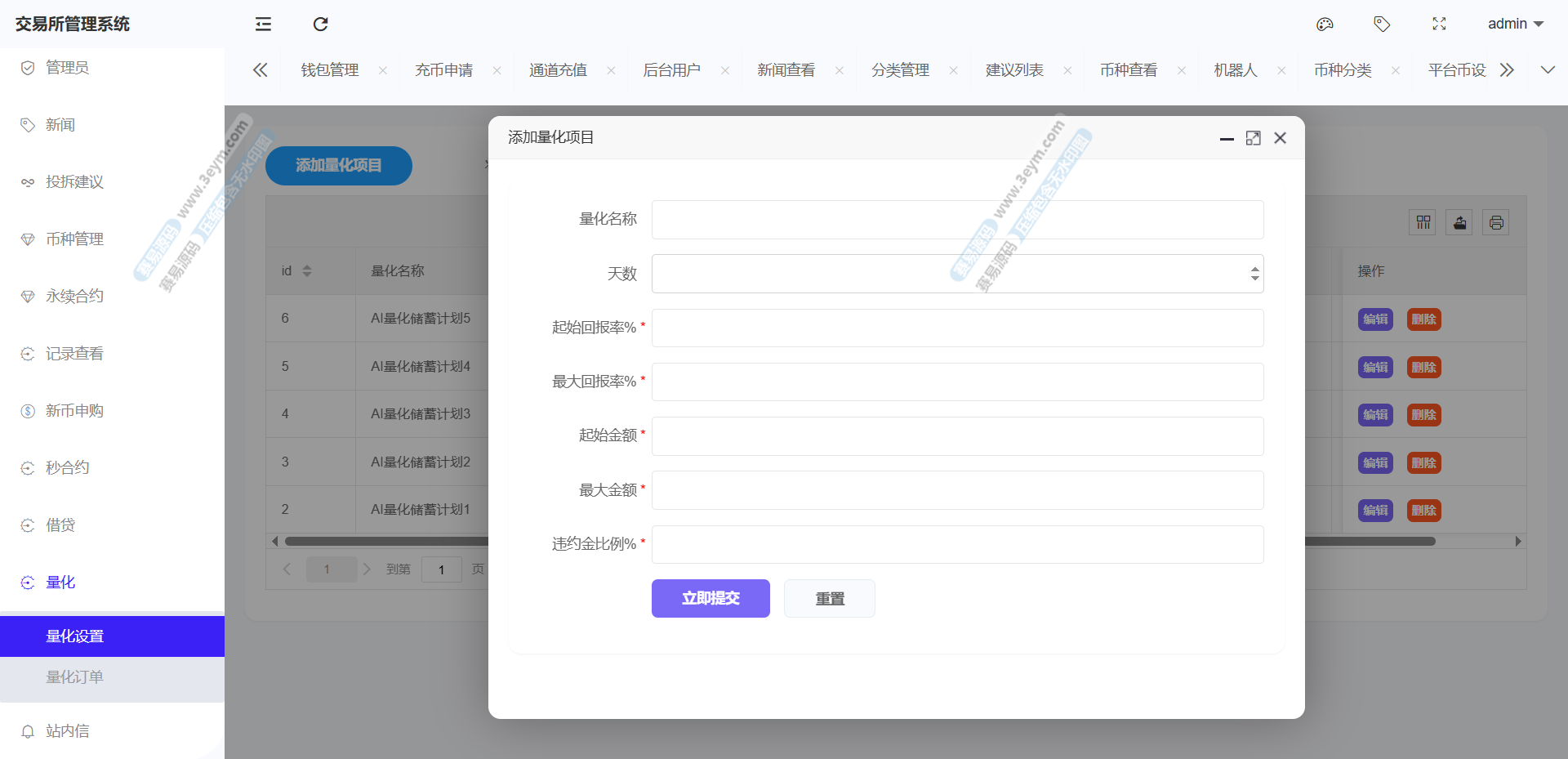 预金与 AI 量化创建宣传基于算法和数据分析的自动化交易方法,可创建 AI 量化交易,选择利率及期限(如 1 天)、投入金额,系统显示回报率区间(0.60 – 1.10%)和额度范围(10 – 9999),通过识别市场模型和机会展开更多交易操作,还设有财政安全”“假期中不间断的收益”“操作简单” 等。