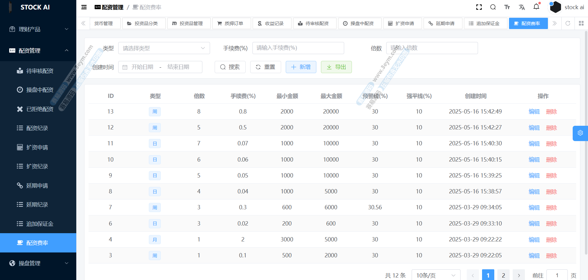 19、配置(编辑产品的购买周期、金额区间、手续费等等)