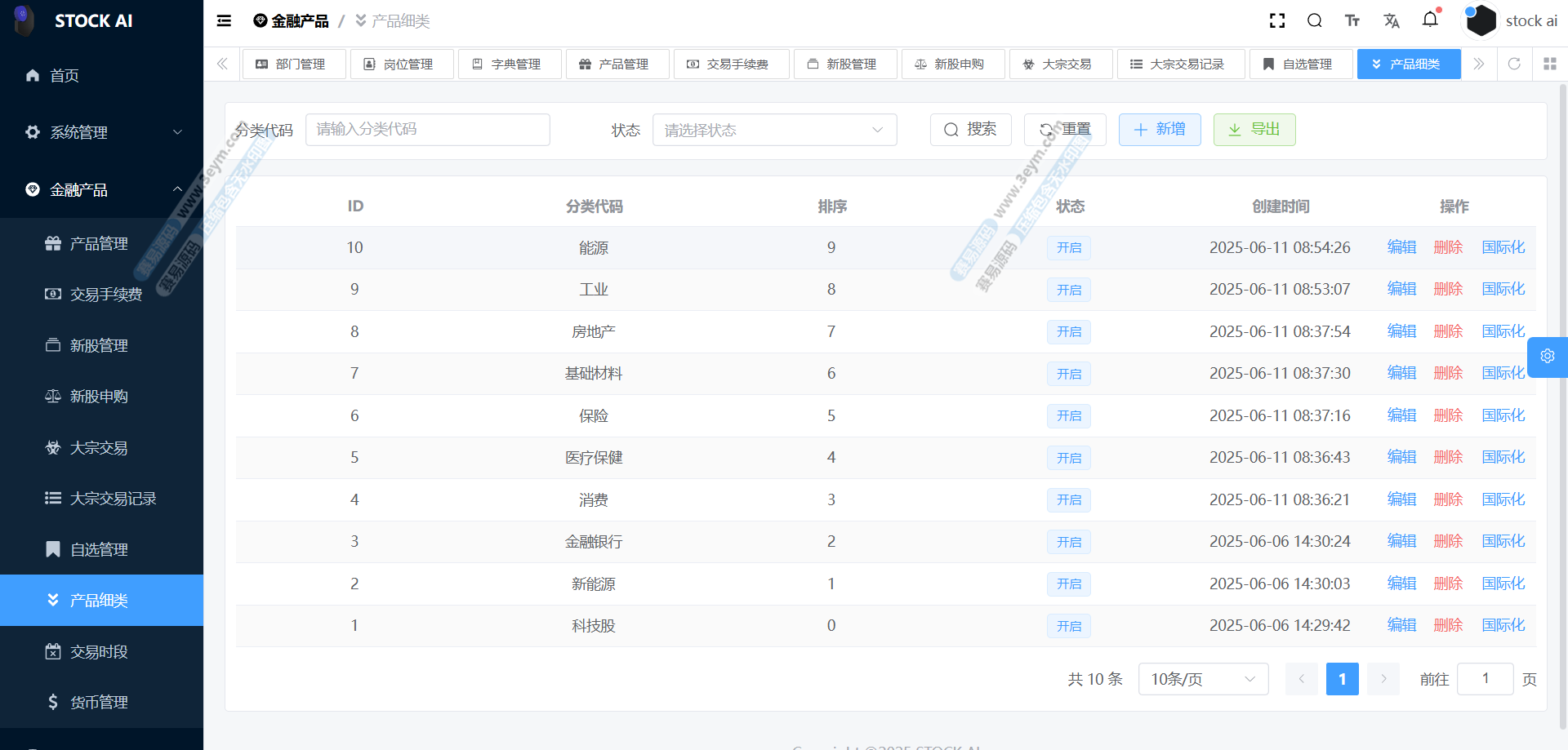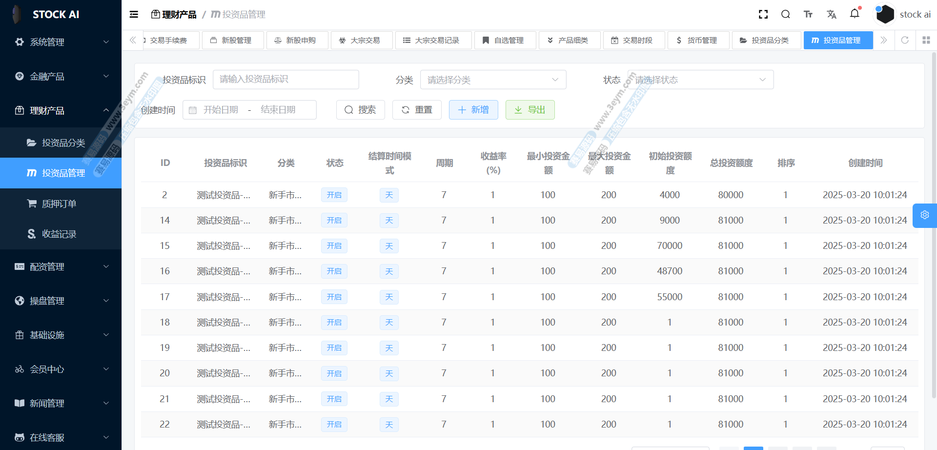 18、金融产品(这里是增加平台产品部分,手动增加后需要代码里面增加一次,不懂可以联系管理员)