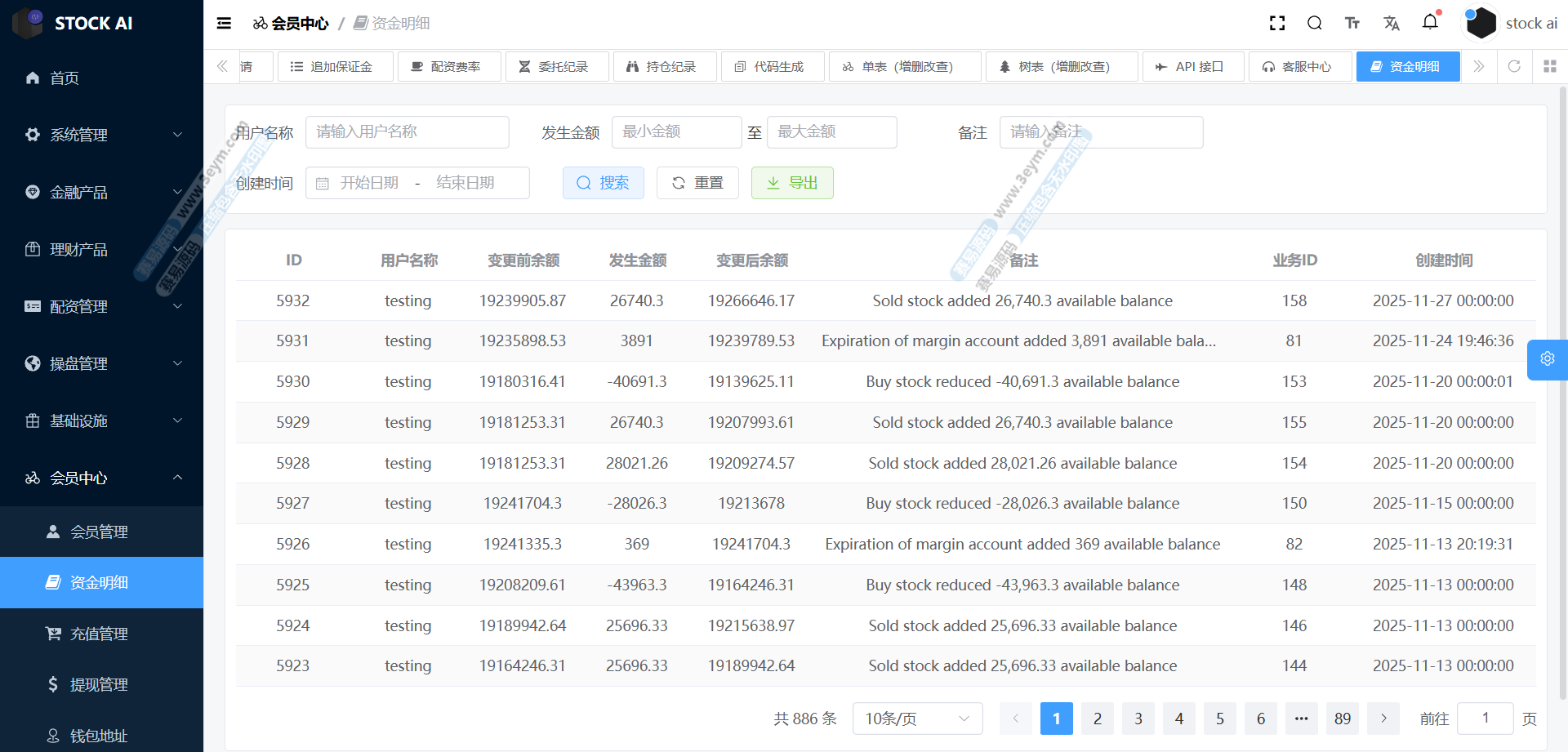 9、钱包管理 (充值明细,提现审核,交易流水,用户钱包)