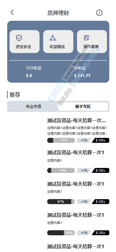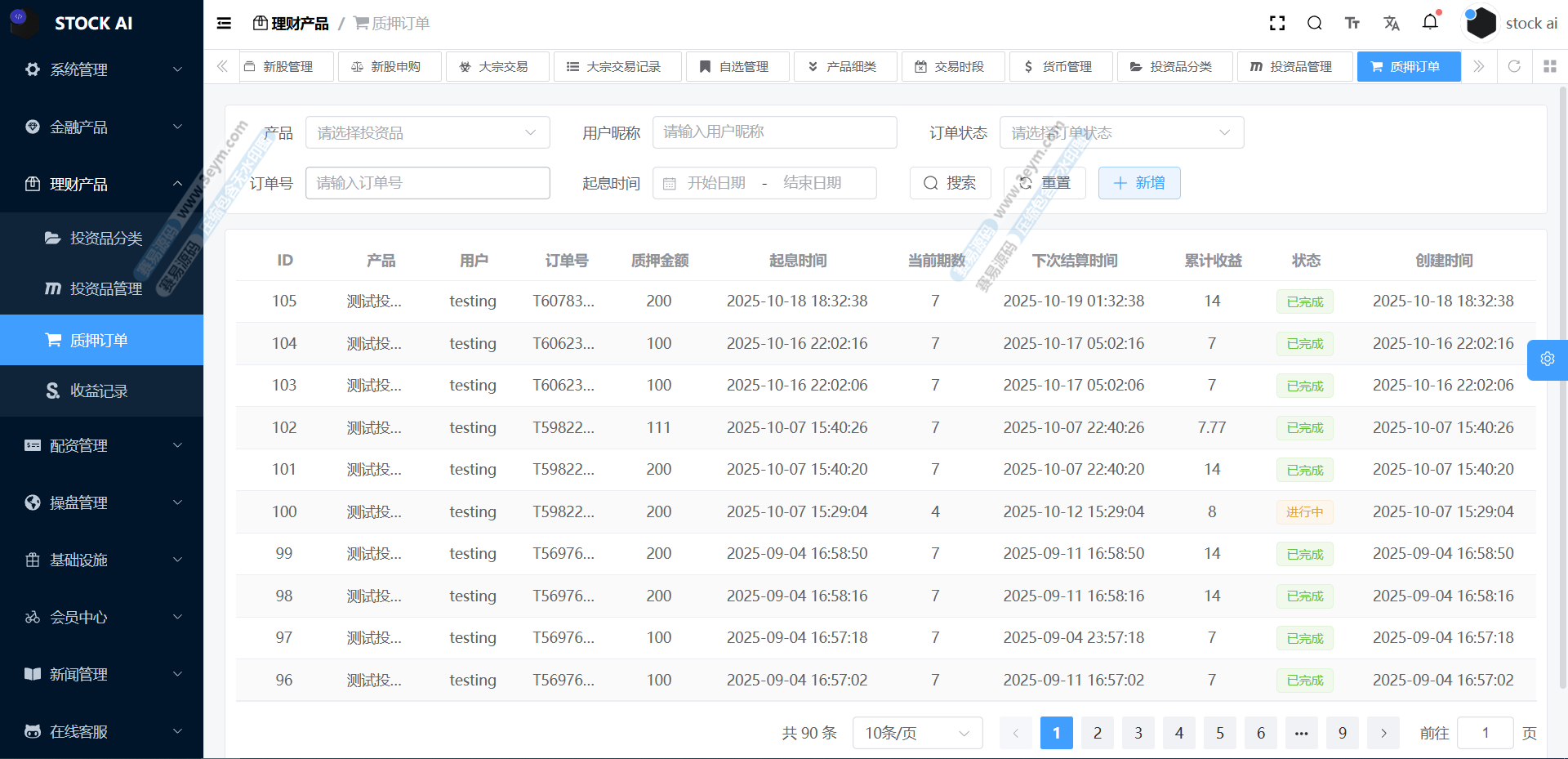 4、质押理财(完全自定义量化产品、名称、利率、周期、详情)