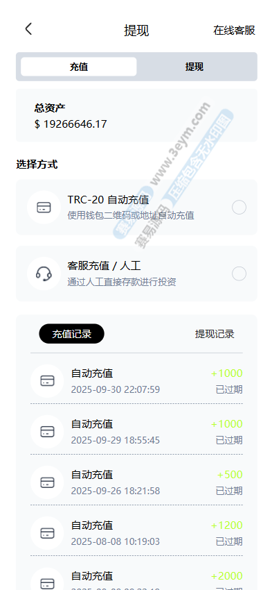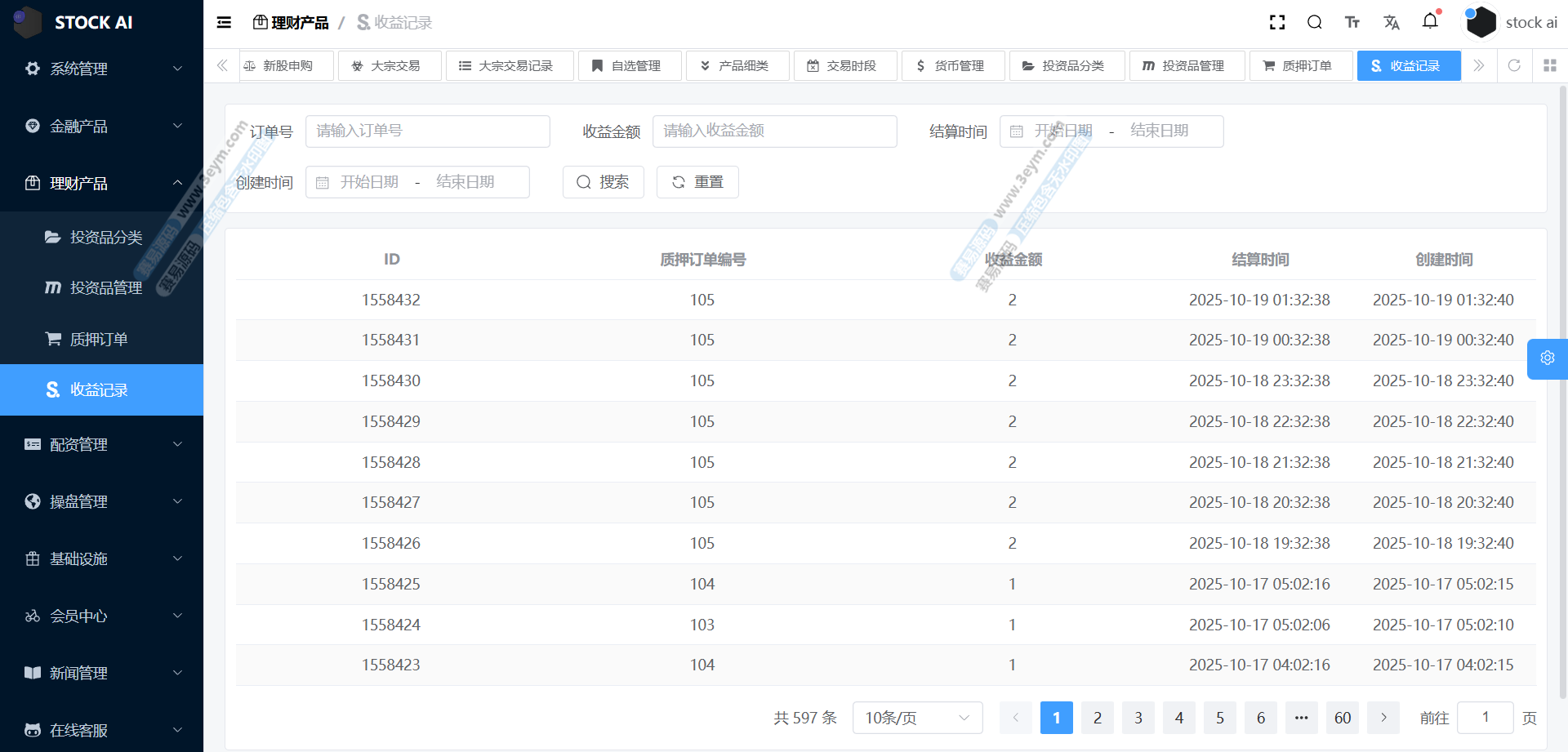 17、收益记录(可查看用户购买后的时间和收益记录)