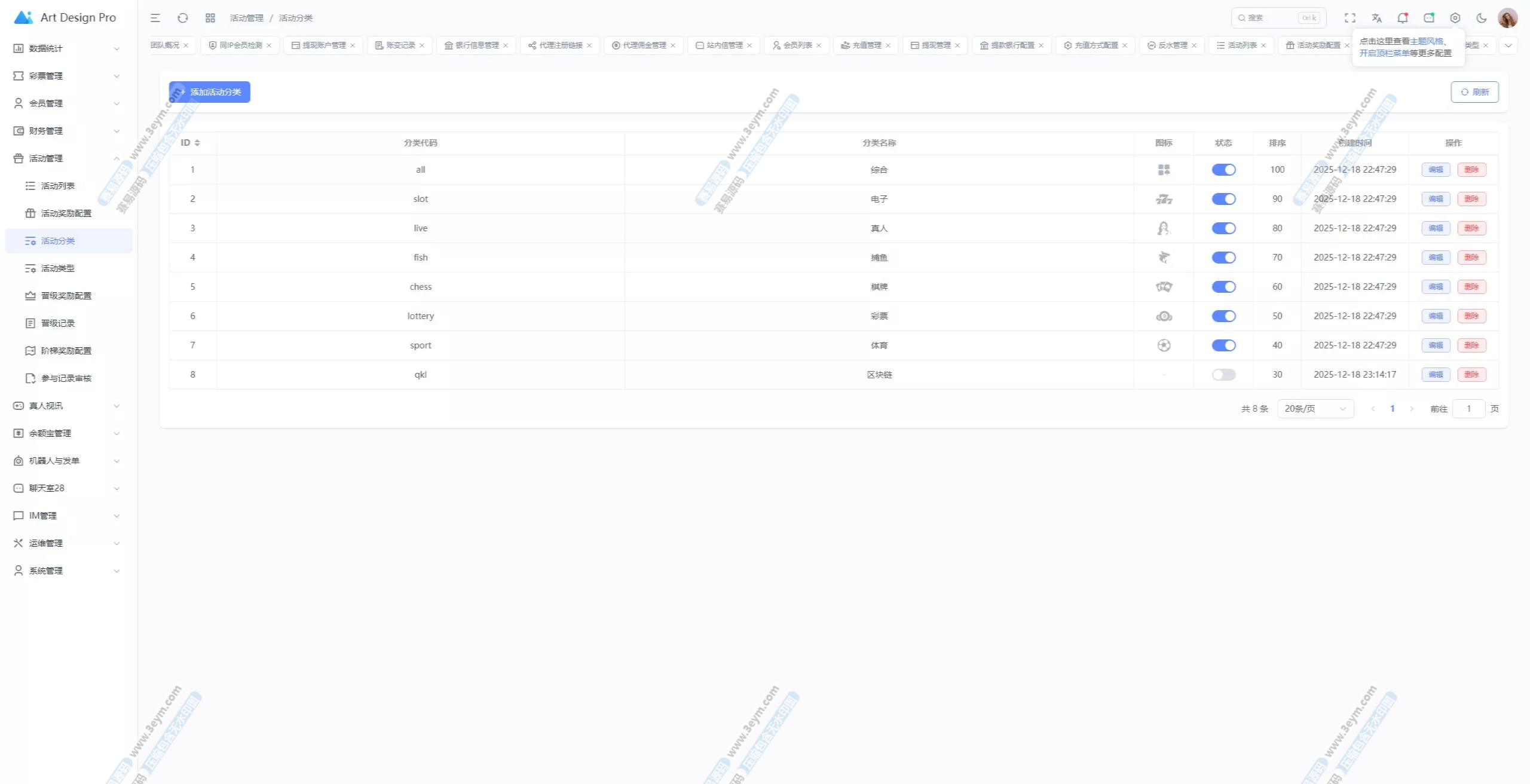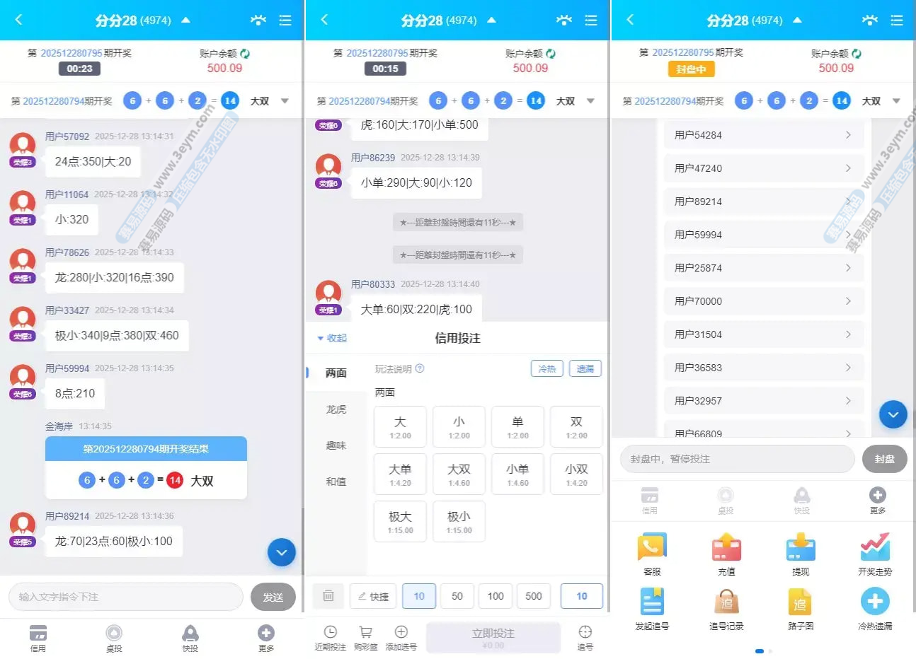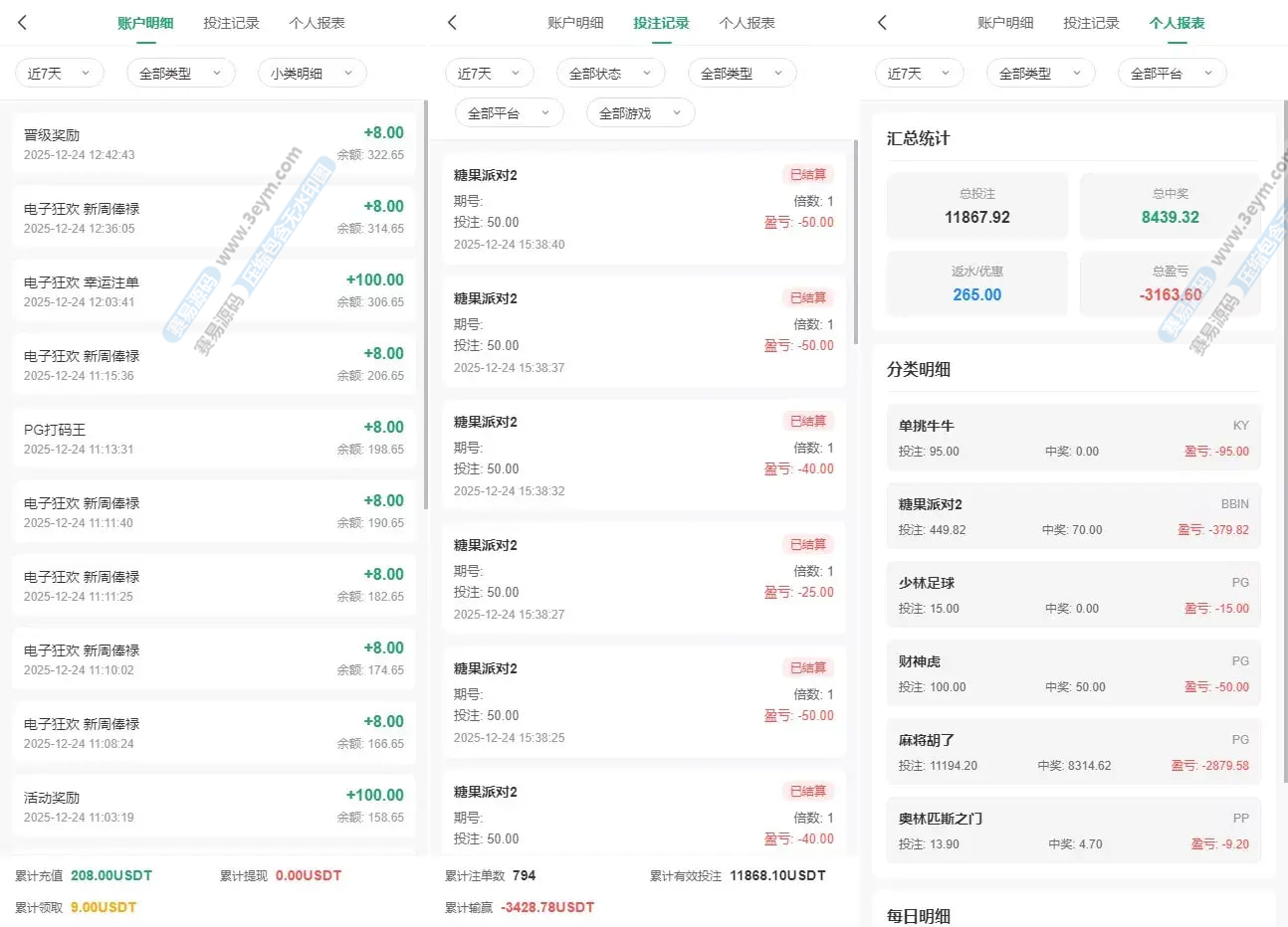 搭建起来跑了一下,东西还是不错的,有私彩系统彩(PC28、六合彩、快三、时时彩等游戏)、娱乐城PG电子、体育、真人、捕鱼、棋牌等游戏)、利息宝、返水等功能。