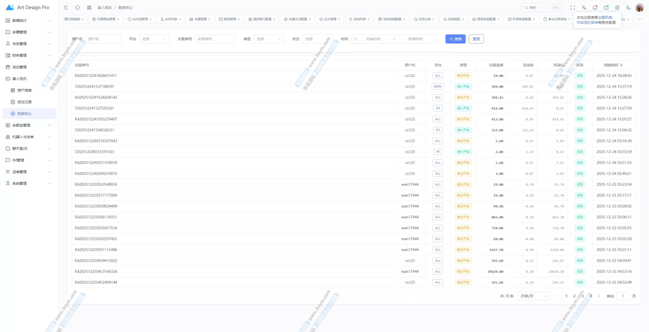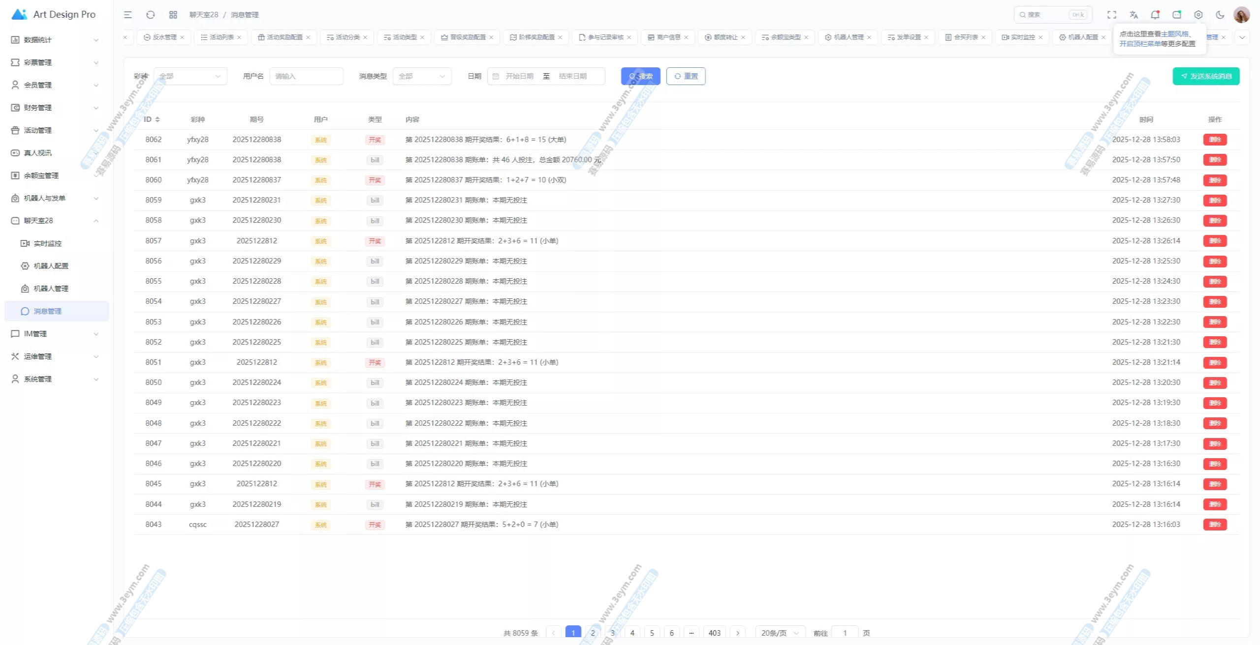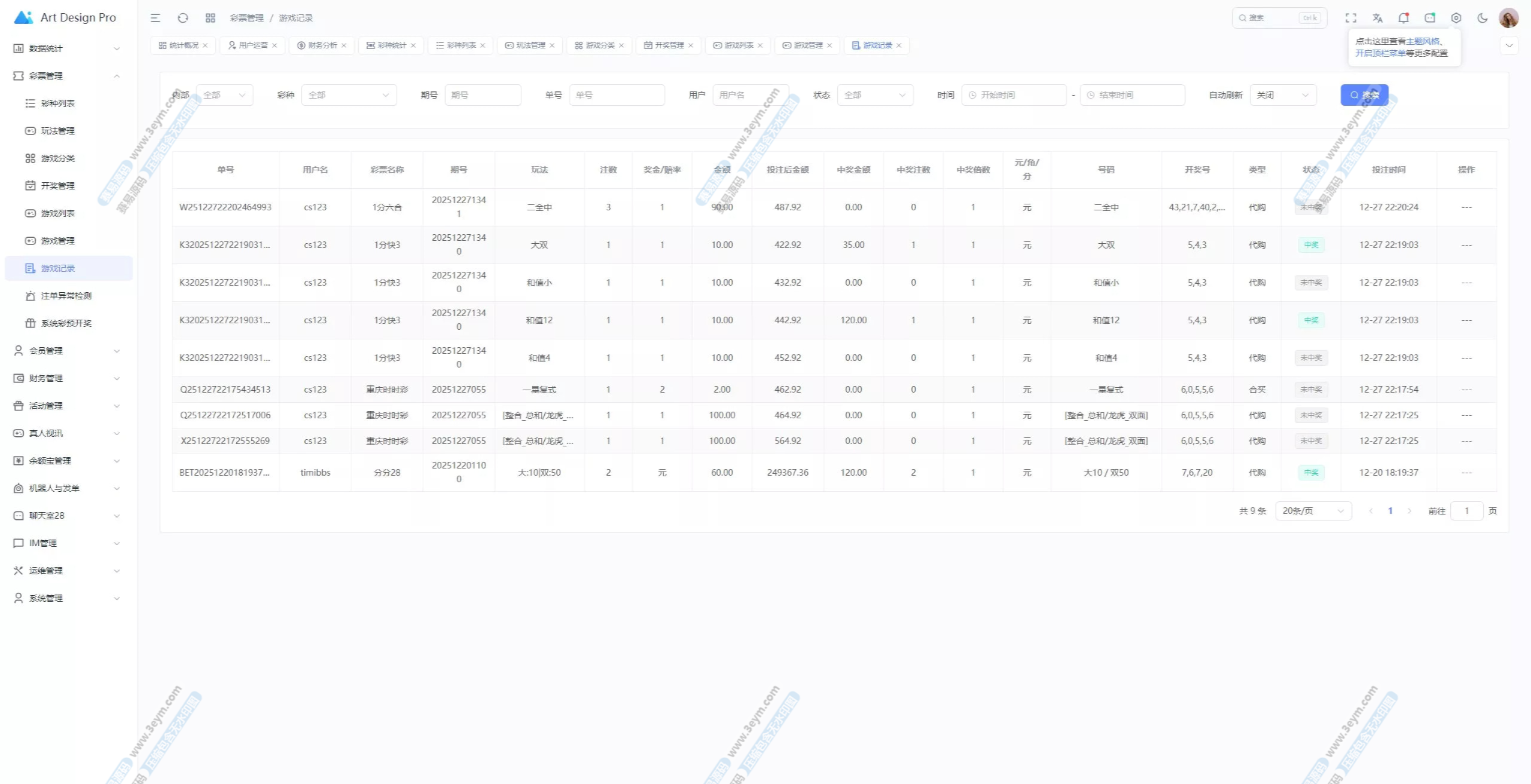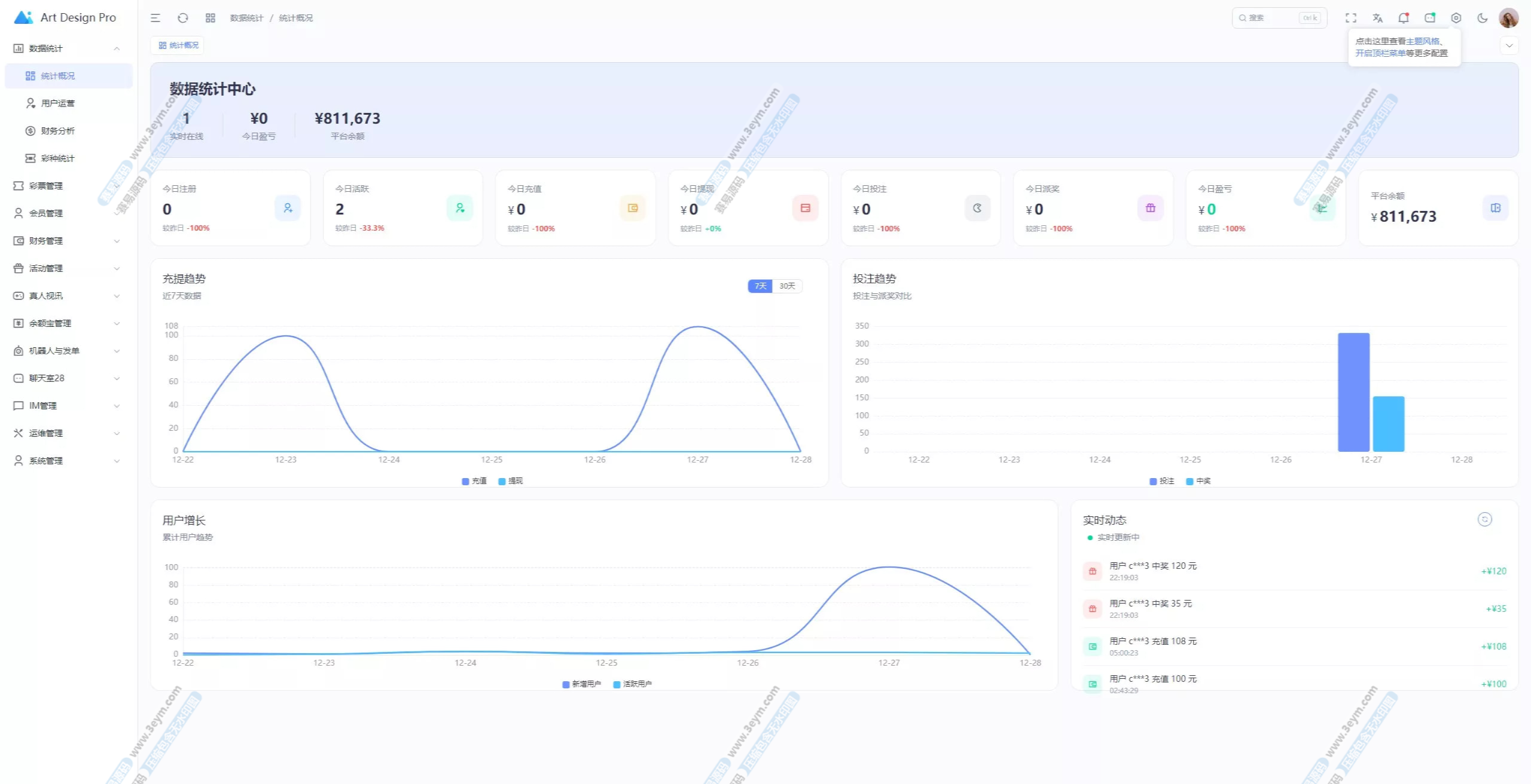 搭建起来跑了一下,东西还是不错的,有私彩系统彩(PC28、六合彩、快三、时时彩等游戏)、娱乐城PG电子、体育、真人、捕鱼、棋牌等游戏)、利息宝、返水等功能。
