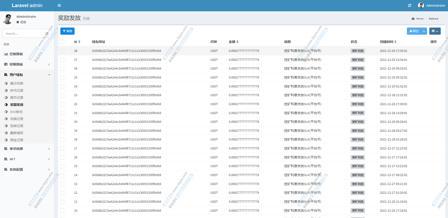 文章目录 Toggle 源码说明源码实测截图 源码说明 系统是Laravel框架开发的ETH授权质押系统,站长测试过了钱包正常登录,前端中文跟英文 觉得UI不喜欢的可以二开 需要其他语言可以联系站长添加 源码实测截图