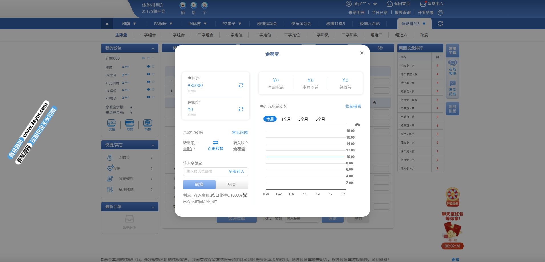 系统内还集成了余额包理财模块,为平台提供更多玩法延展空间: