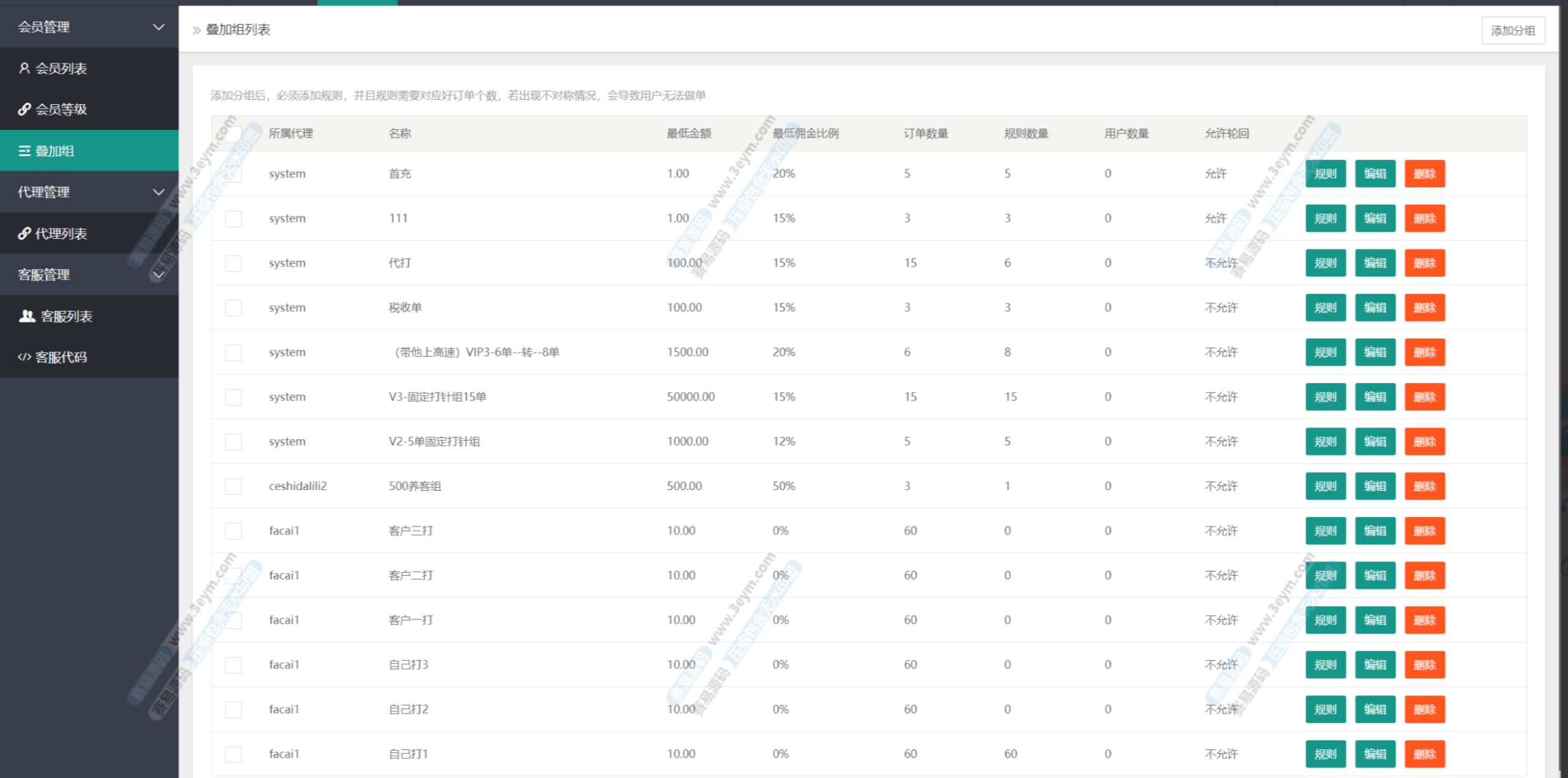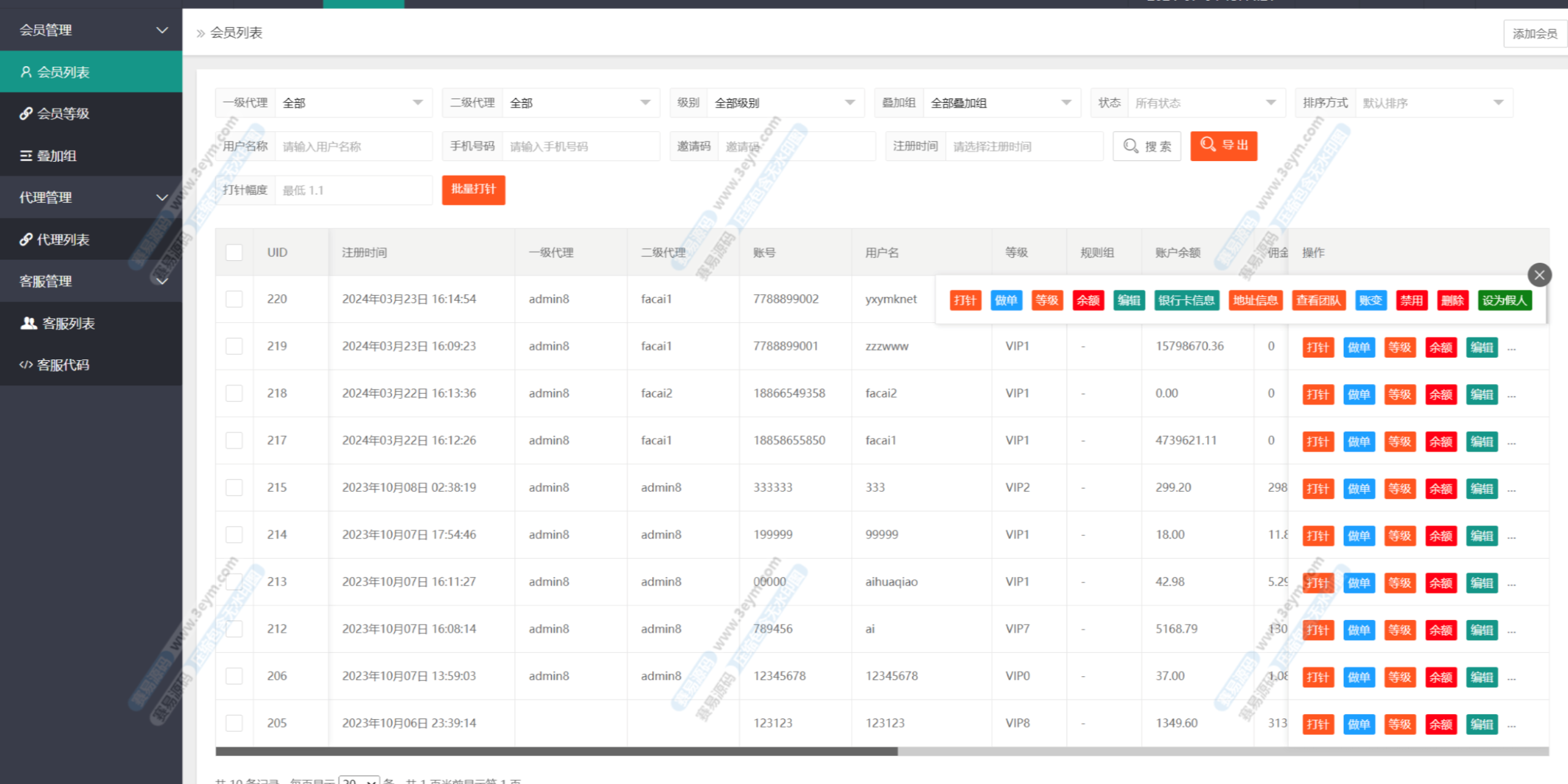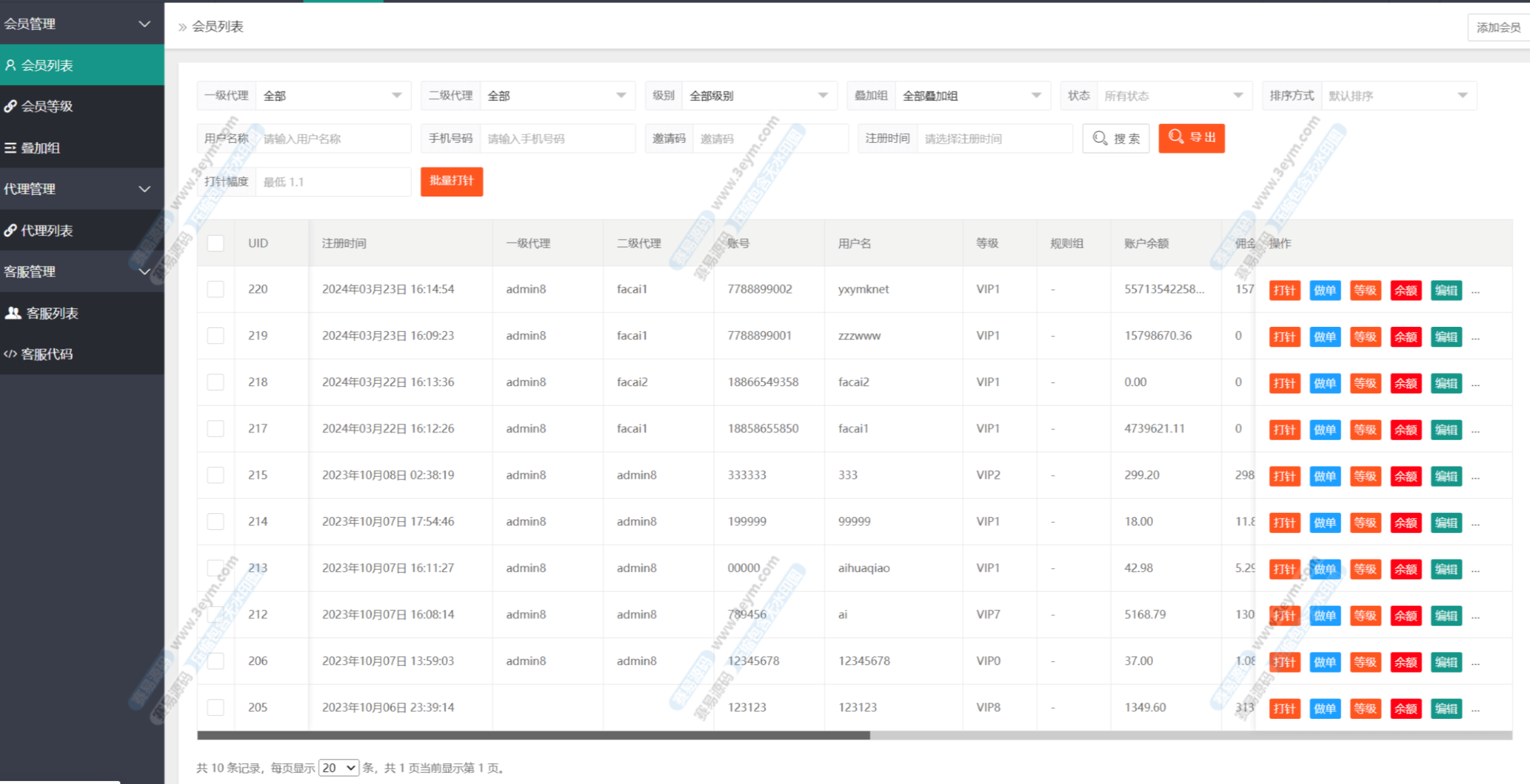 - 多级代理体系:支持主账号、二级代理、推广员及分佣逻辑,适合推广型平台或渠道分发。