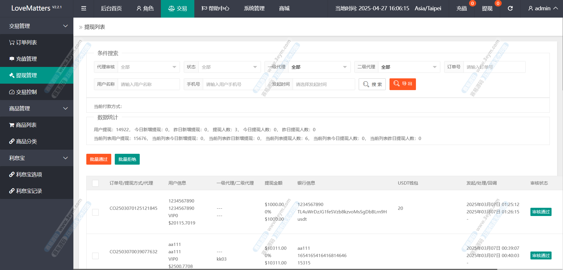3、清空所有订单,比如我会员等级设置完成20个订单就可以提现,但是我手动清空重置订单,这个账号还需要完成我会员等级设置的20个订单才能再次提现,目前会员等级里面设置的是按每天完成多少个订单就可以提现。