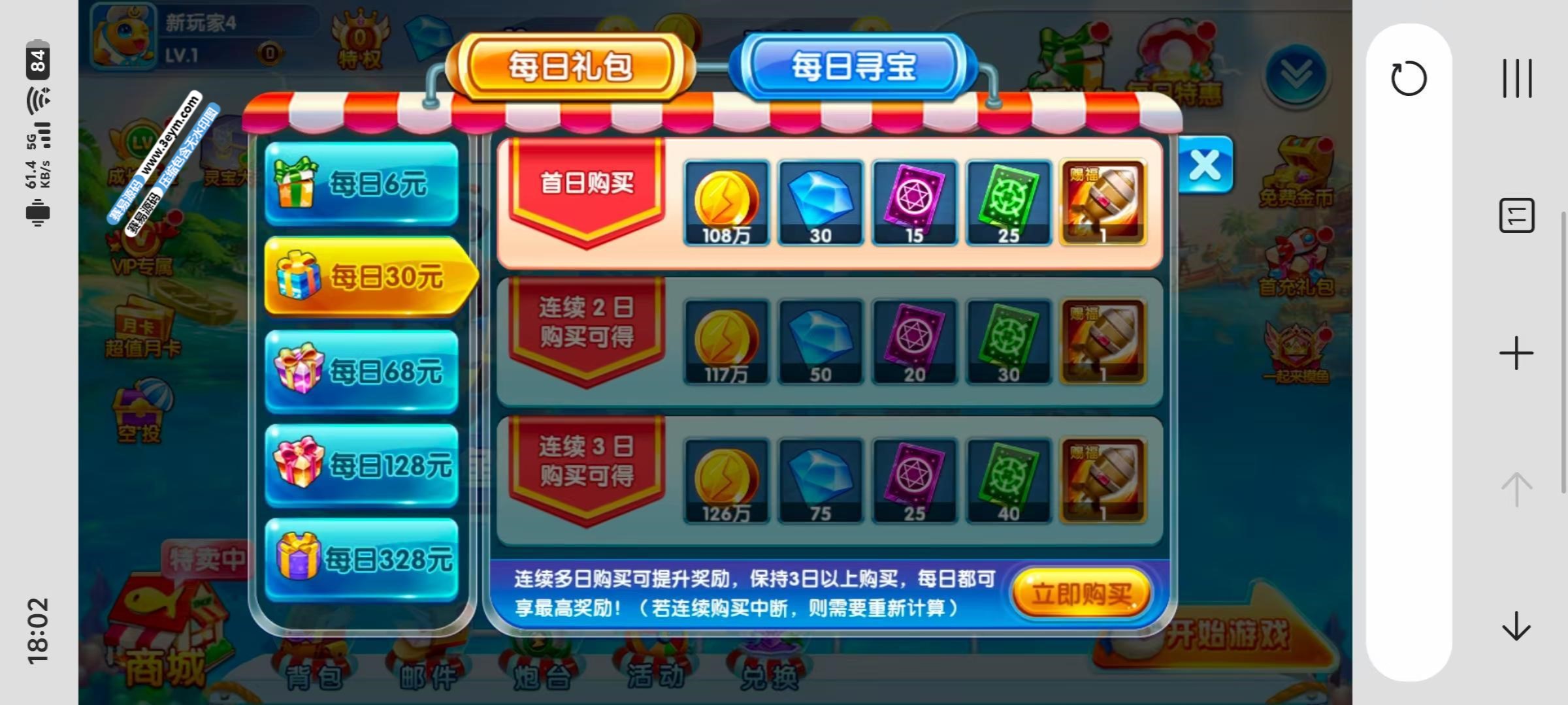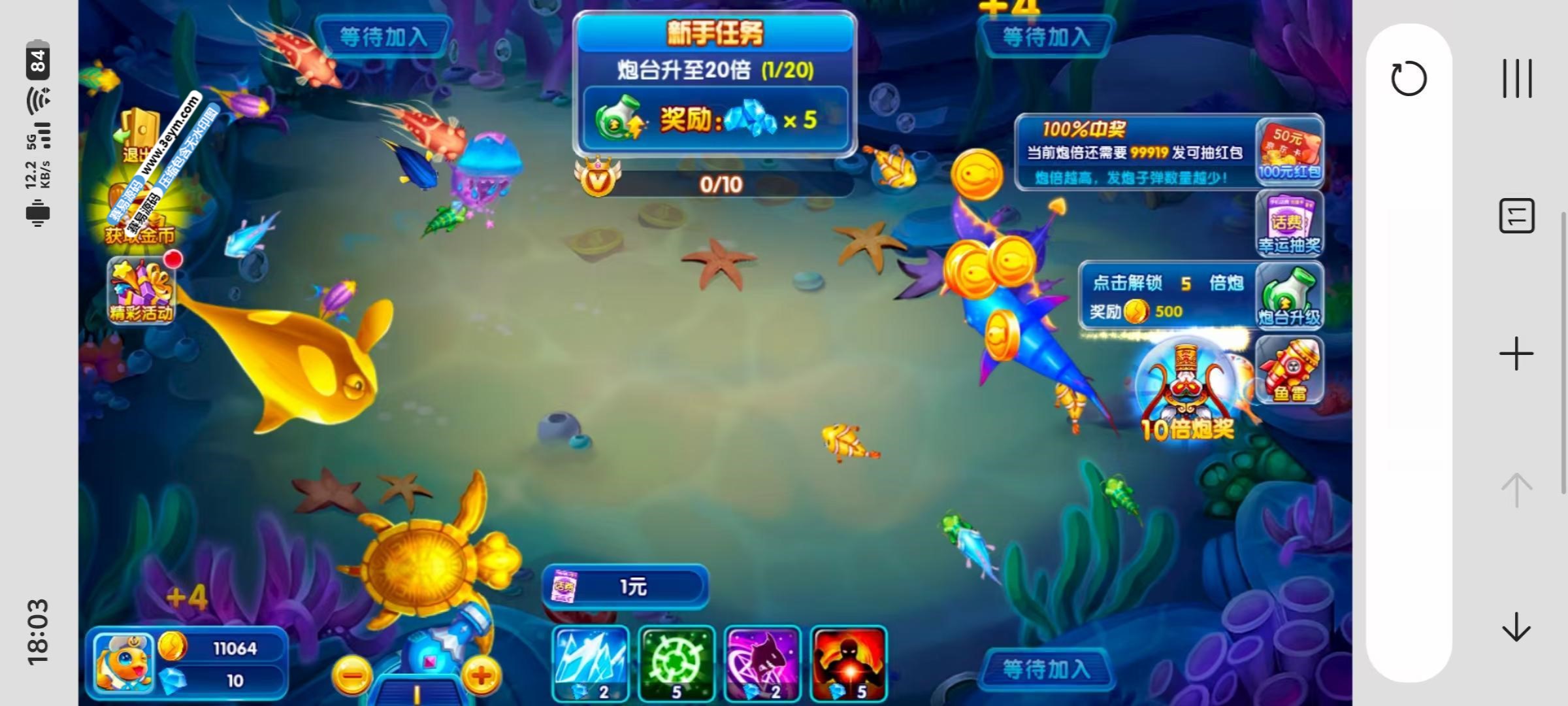 玩法也不只是单纯捕鱼,还有寻宝、打塔等扩展玩法,内容挺多,这里就不一一展开了。