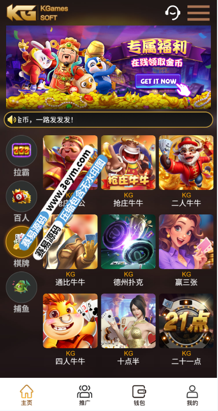 该版本集成 PG 电子、棋牌游戏、牛牛、捕鱼、拉霸等多种常见玩法,适合用于综合型电子平台搭建、二次开发或技术研究用途。