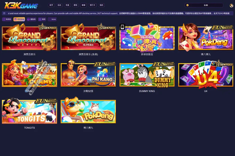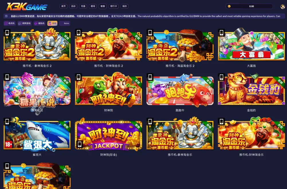 - 支持多游戏类型(slots、街机等)