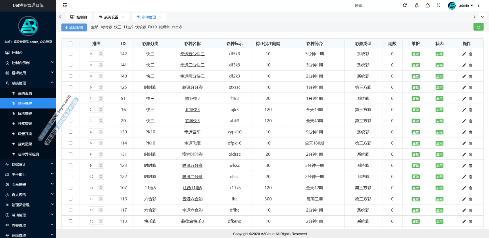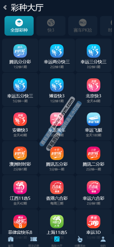 - 热门彩种齐全:支持数十种主流彩种玩法,包括快彩、时时彩、北京赛车、六合彩等,玩家玩法多,留存高。
