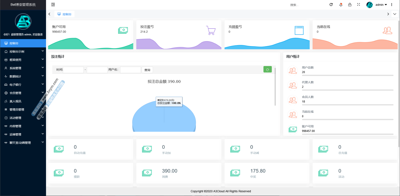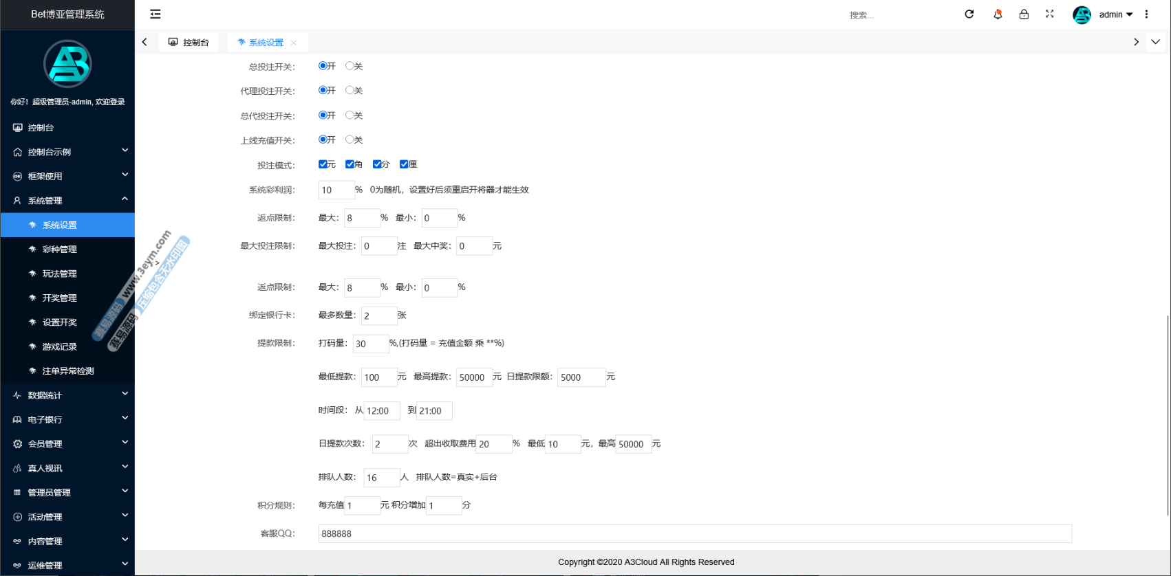 - 后台管理灵活:完整数据管理系统,可以轻松调配用户、代理、返点等信息,自带权限分级,运营控制非常方便。