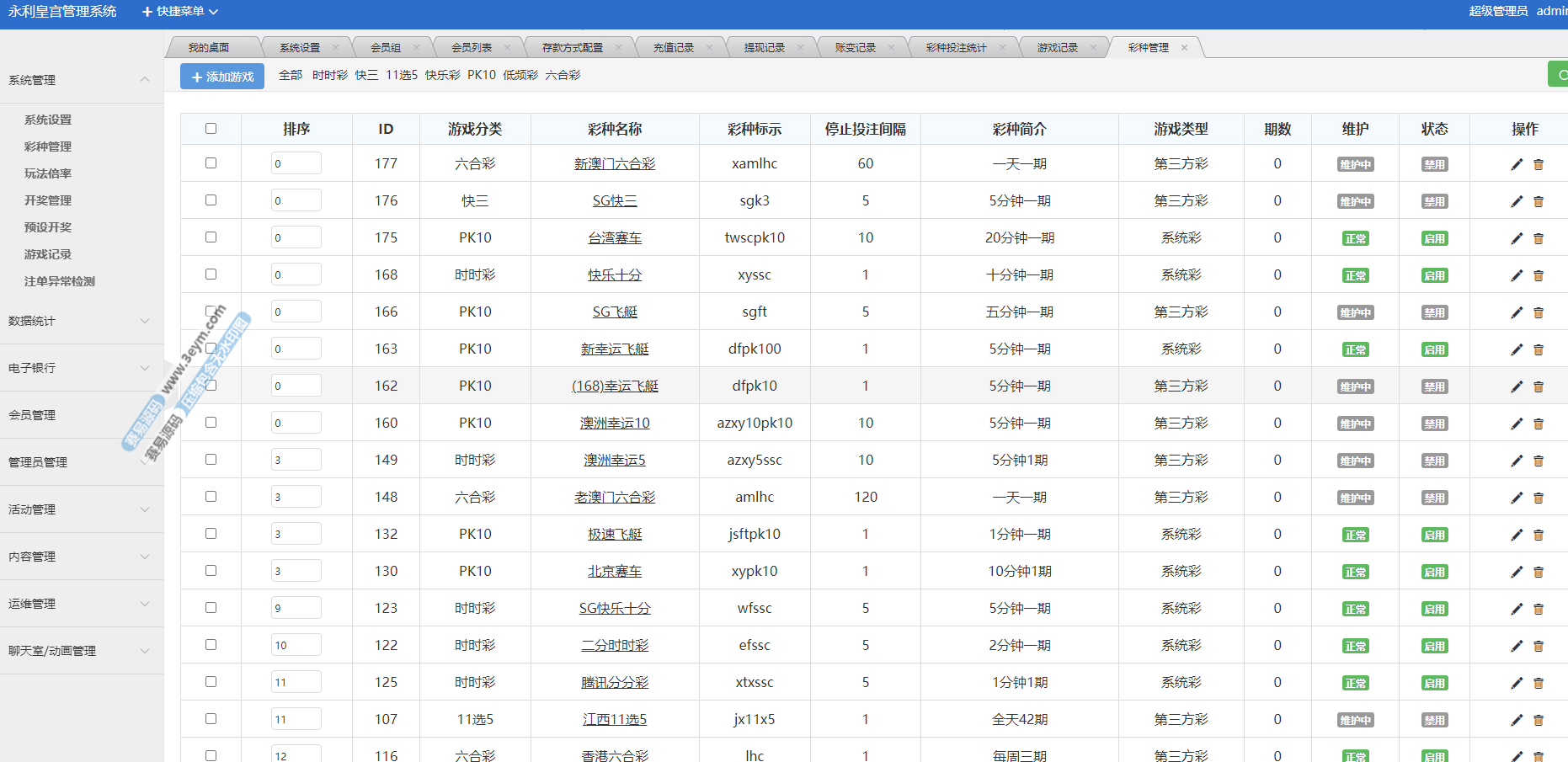- 开奖和控制:优化了开奖逻辑和后台控杀功能,自由添加彩种也很方便