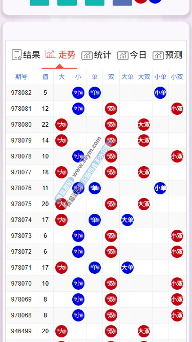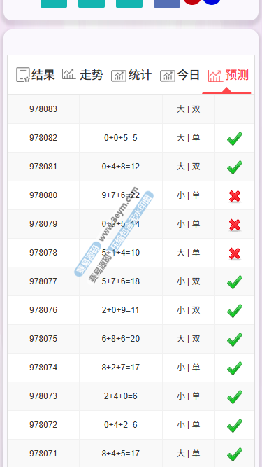- 预测+走势统计:结果、预测、走势统计都齐全