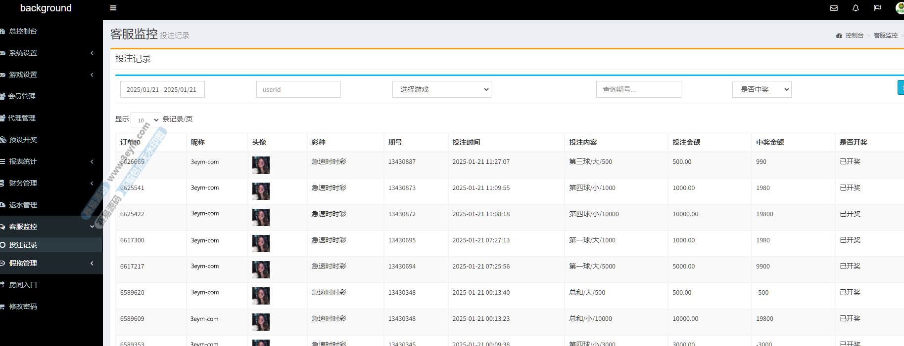- 后端支持 预设开奖号