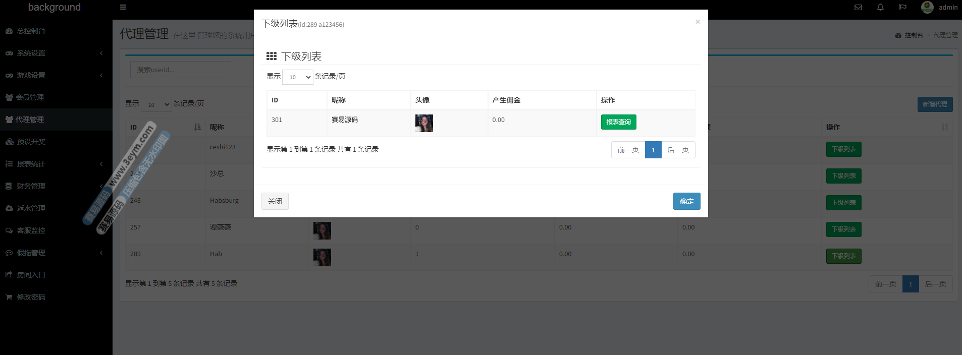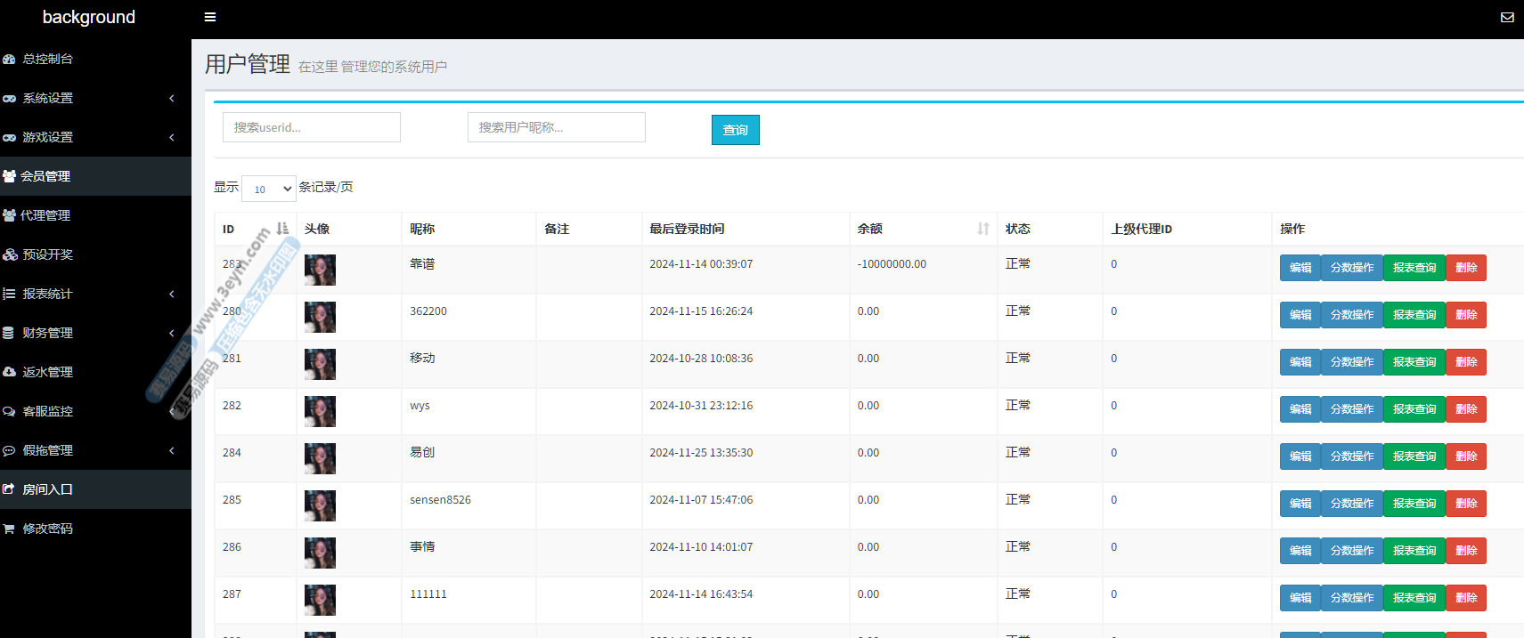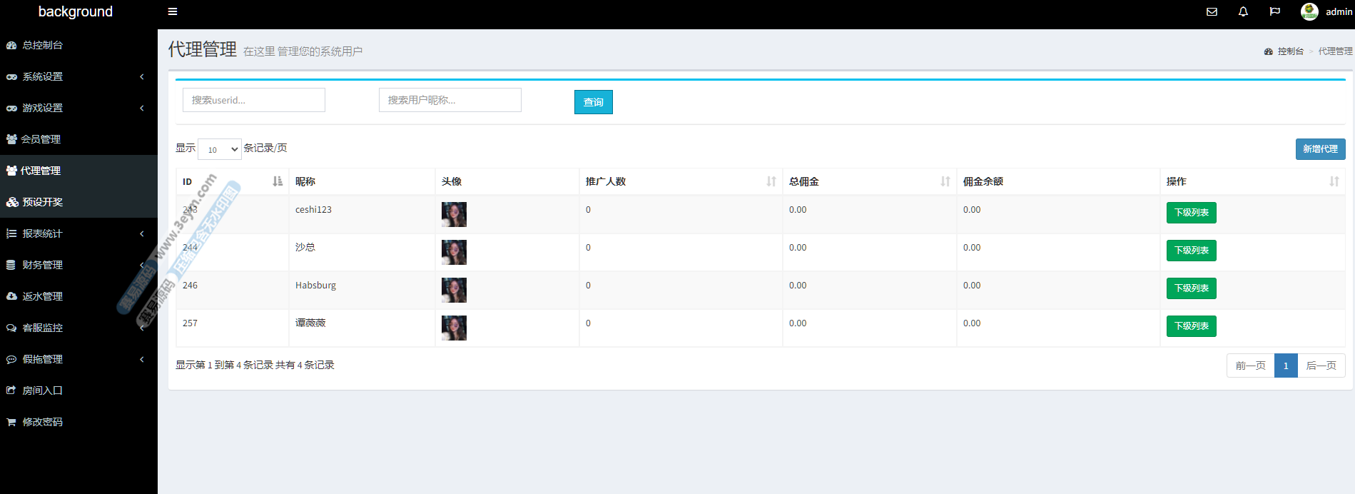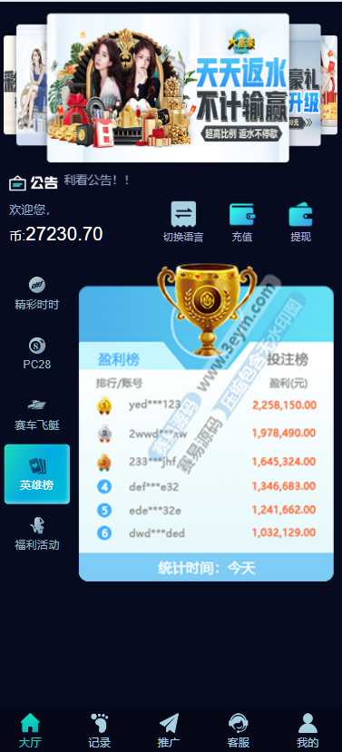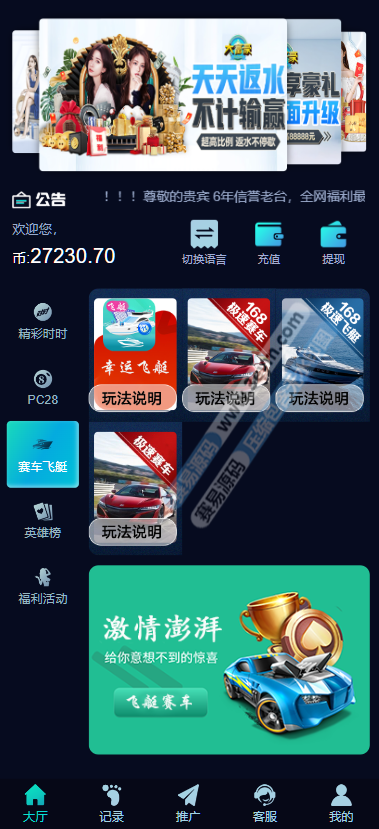 - 支持 返水、佣金系统