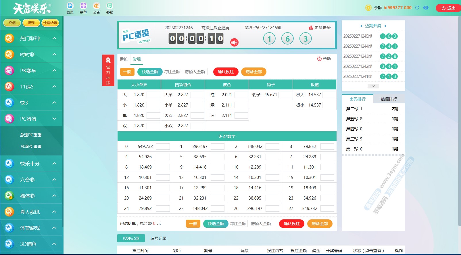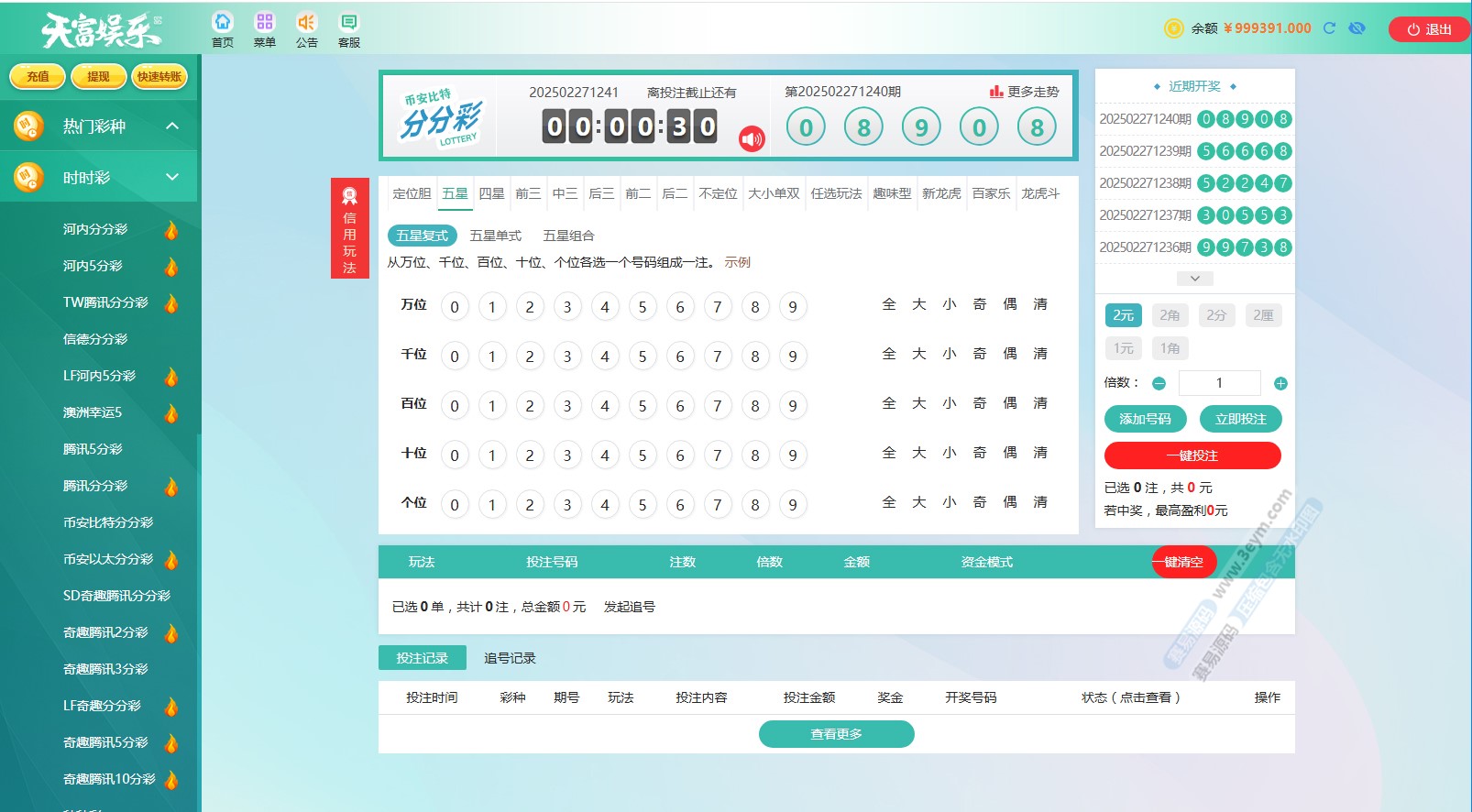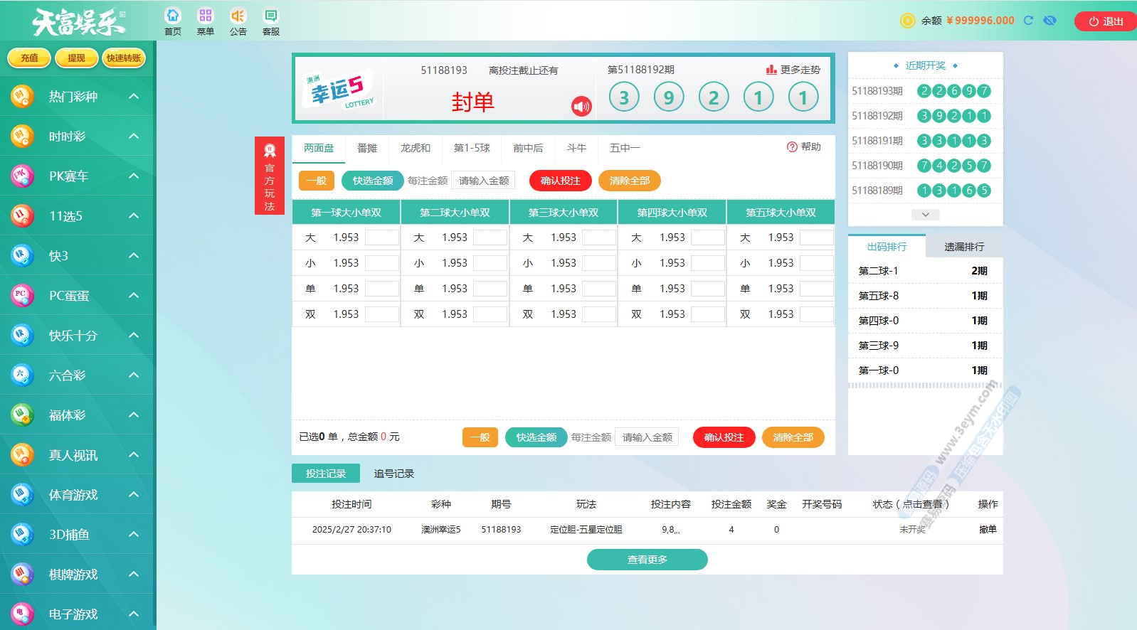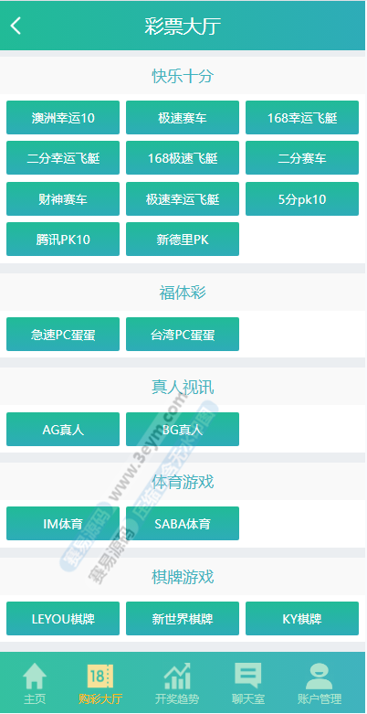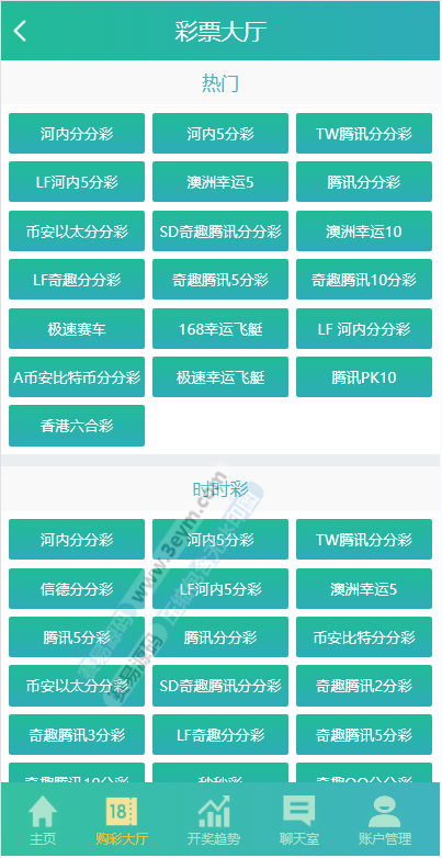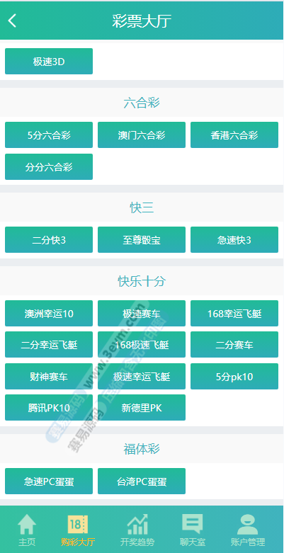 - 系统彩、官方彩、六合彩虚拟币、腾讯彩等几十个彩种