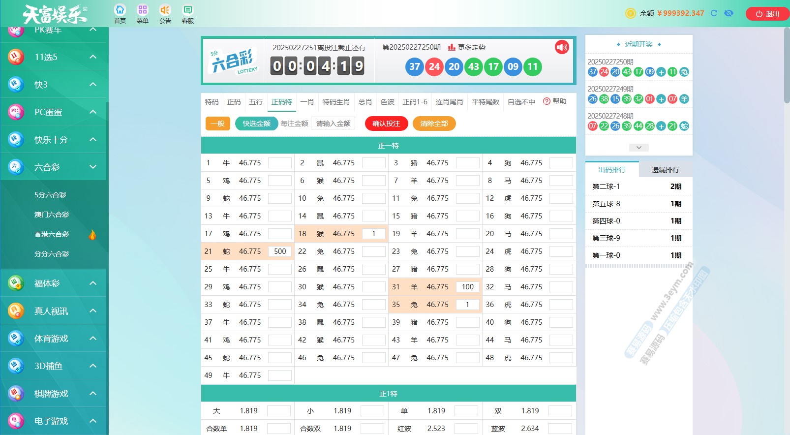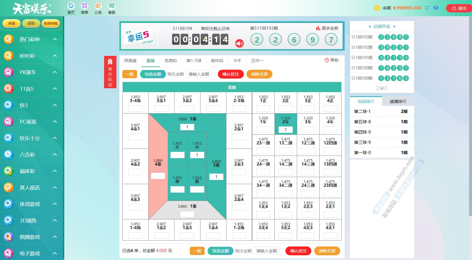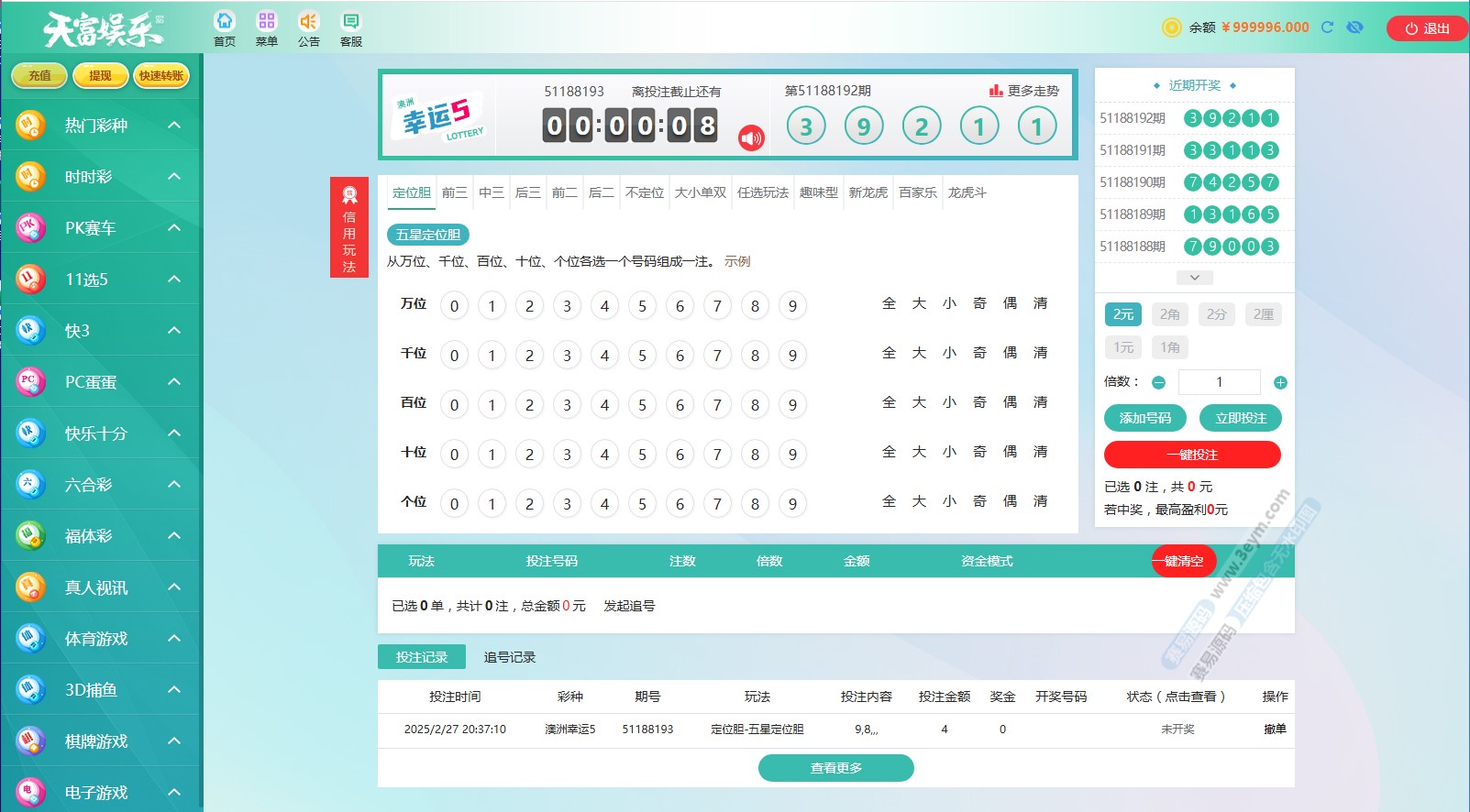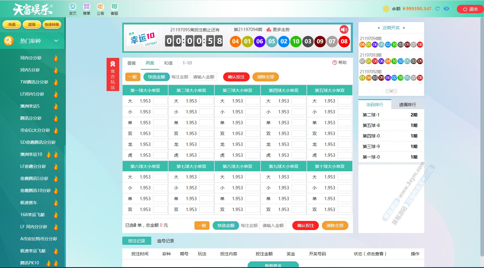 - 系统彩、官方彩、六合彩虚拟币、腾讯彩等几十个彩种