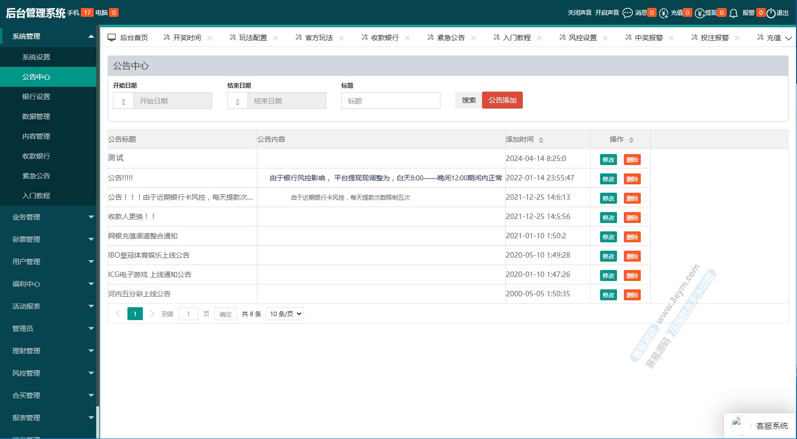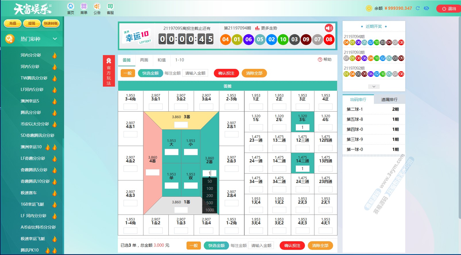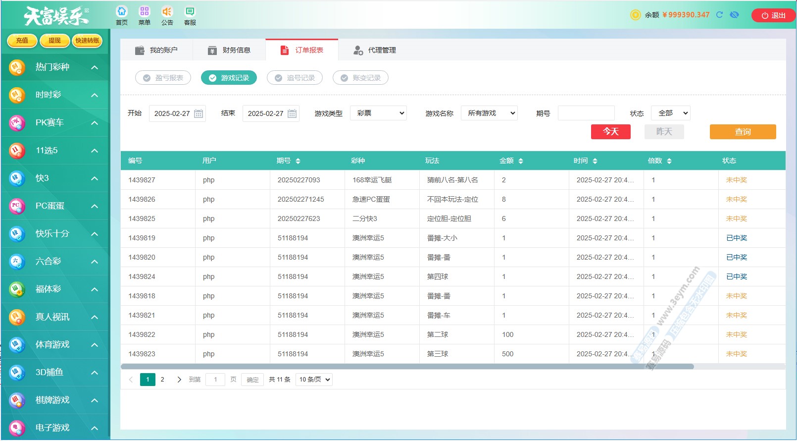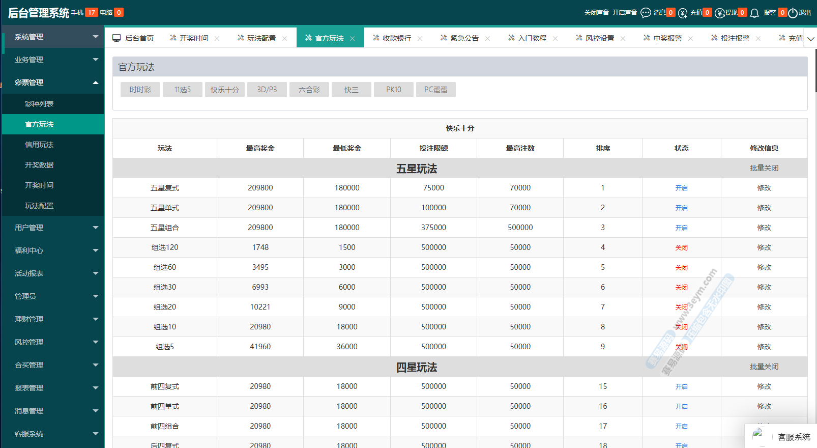 - 系统彩、官方彩、六合彩虚拟币、腾讯彩等几十个彩种