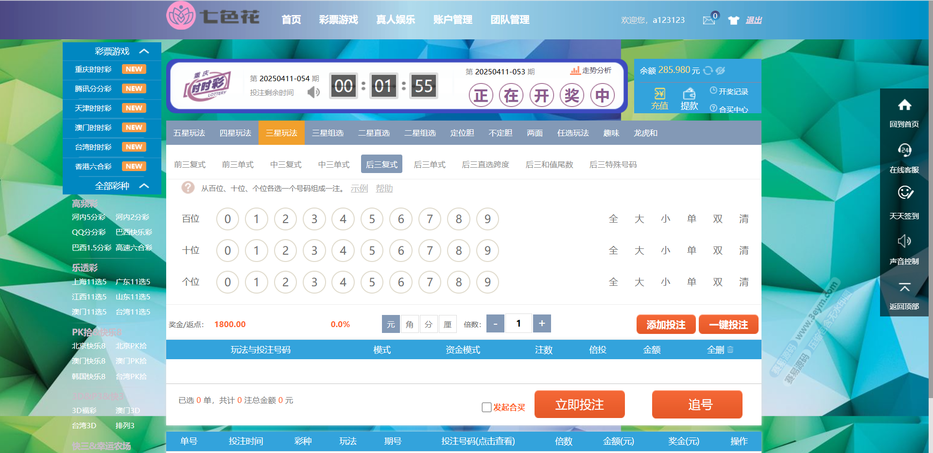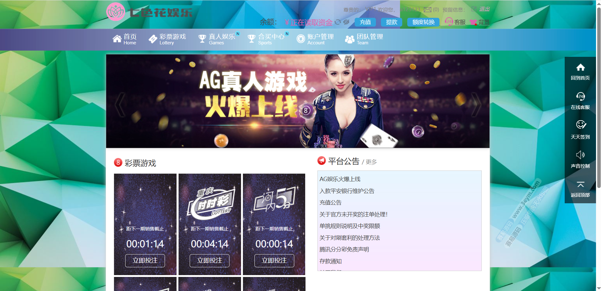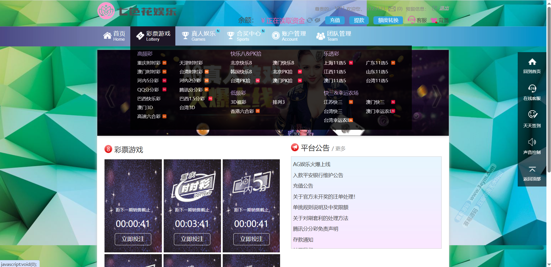 这套是 杏彩改版七色花 SSC 平台源码,基于天恒框架开发,整体结构比较成熟,功能也算完整,适合做时时彩类综合玩法平台。