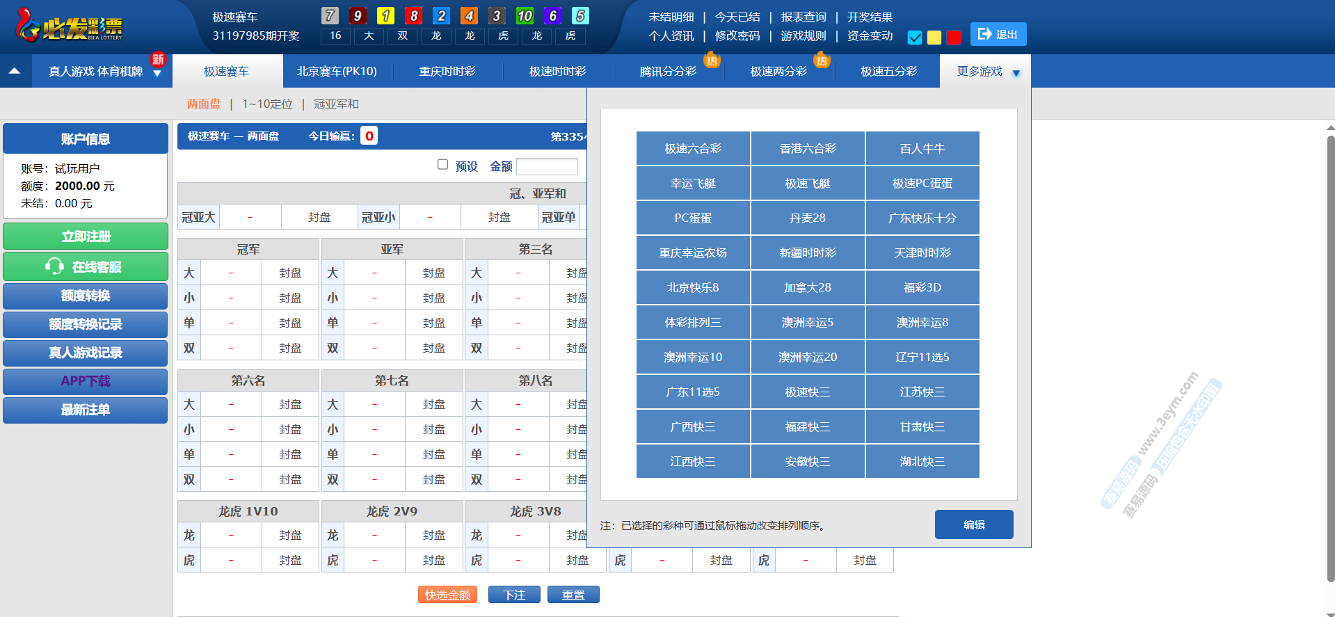 腾龙国际这套双玩法彩票平台,是一套已经实际搭建并运营过的版本,整体稳定性和功能完整度都比较高。