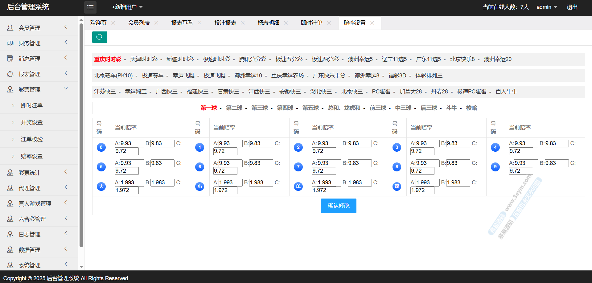 系统里面自带契约代理体系和风控管理功能,后台可以做概率控杀,整体控制逻辑比较成熟。开奖采集接口这块也做得比较稳定,日常运行比较流畅。