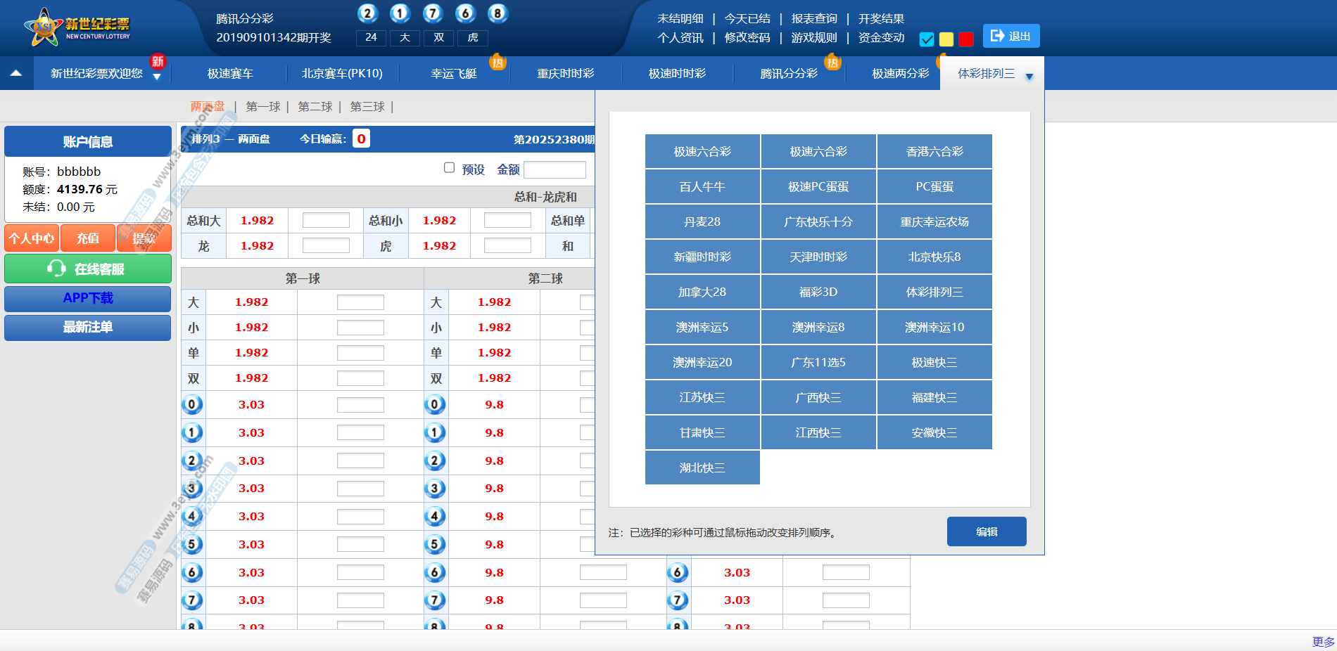 整体来说,这套属于比较完整的一套彩票系统版本,如果是想搭建 带试玩、代理体系、双端自适应的彩票平台,这套新世纪版本算是比较成熟的一类方案。