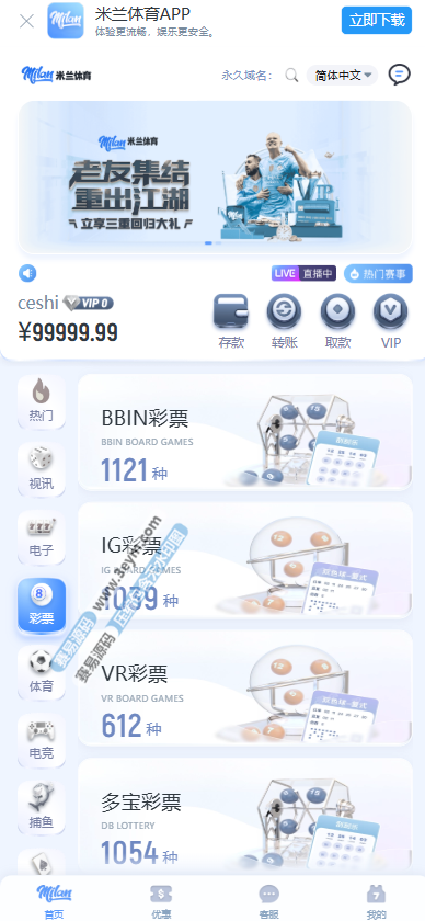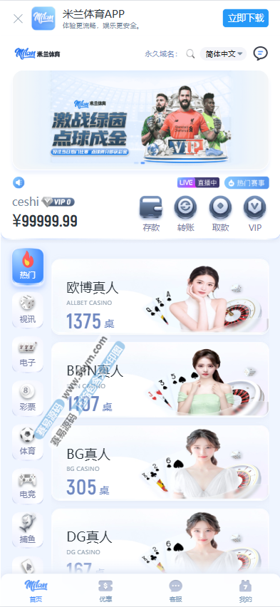 这套 米兰体育综合盘源码属于比较常见的运营版结构,接口已经整理好,整体功能比较完善,适合做体育 + 娱乐城 + 综合盘这一类项目。程序对接的是常见接口方案,稳定性高系统丝滑流畅,PC端和手机端都有,H5还能直接封装成 APP。