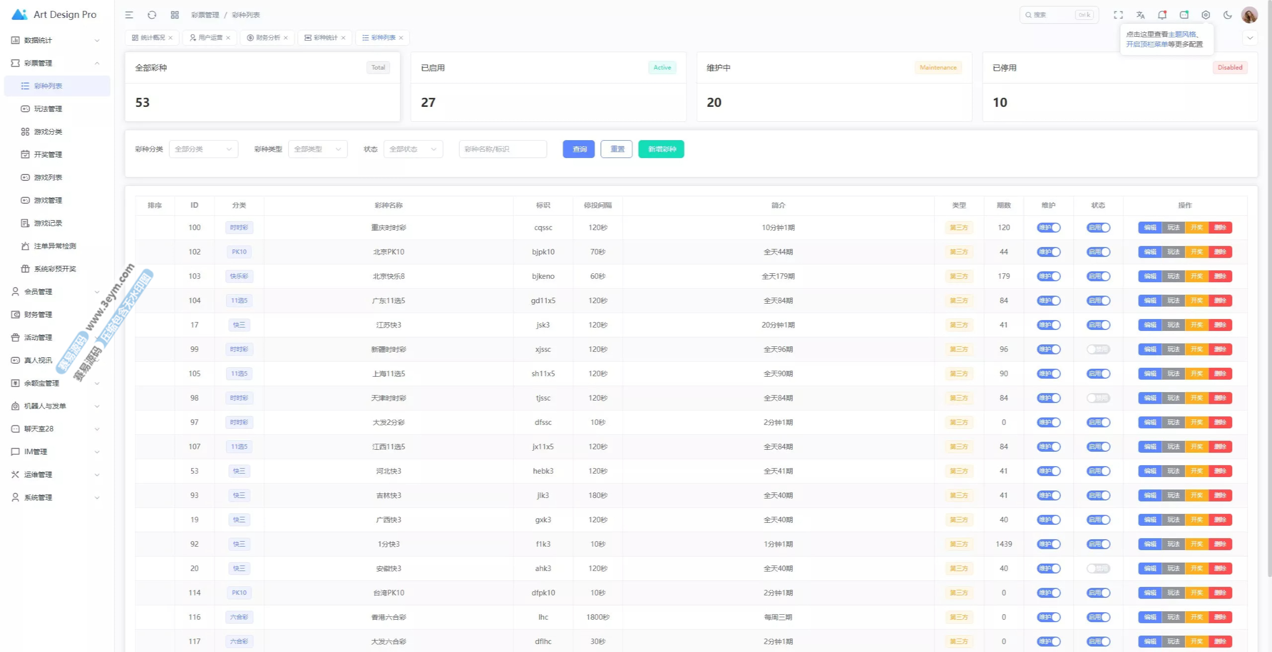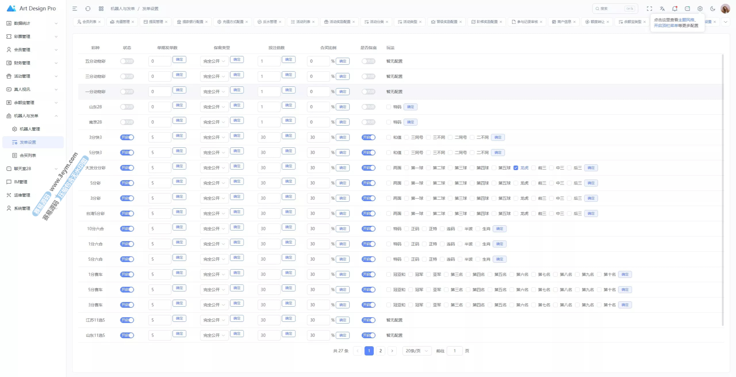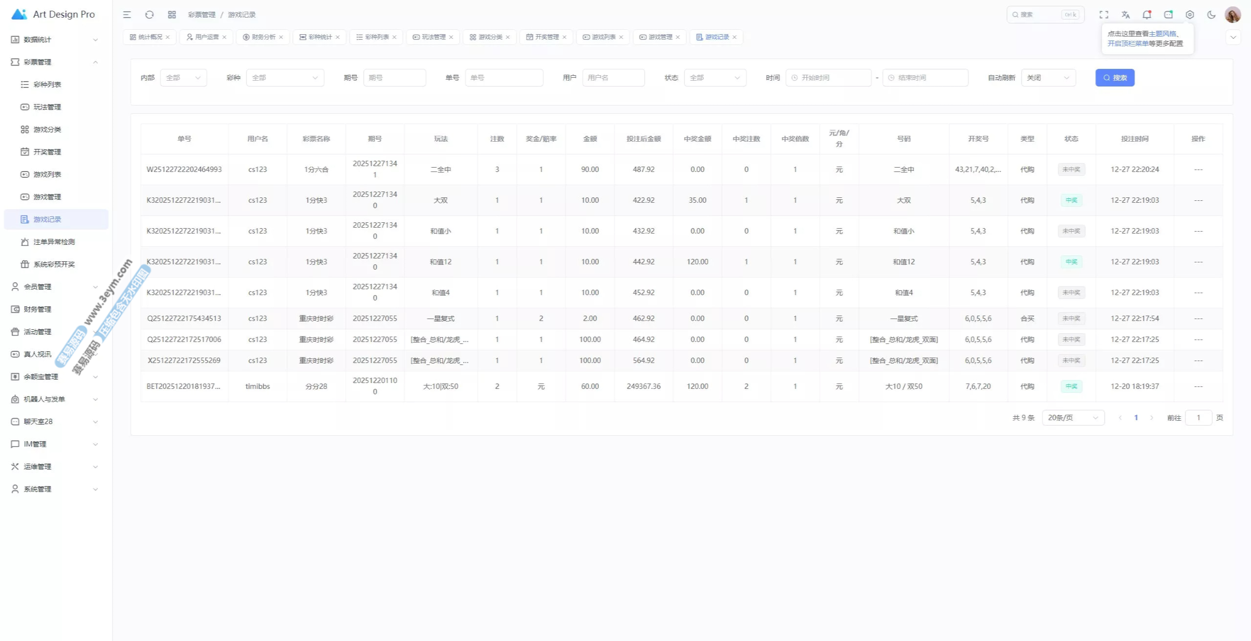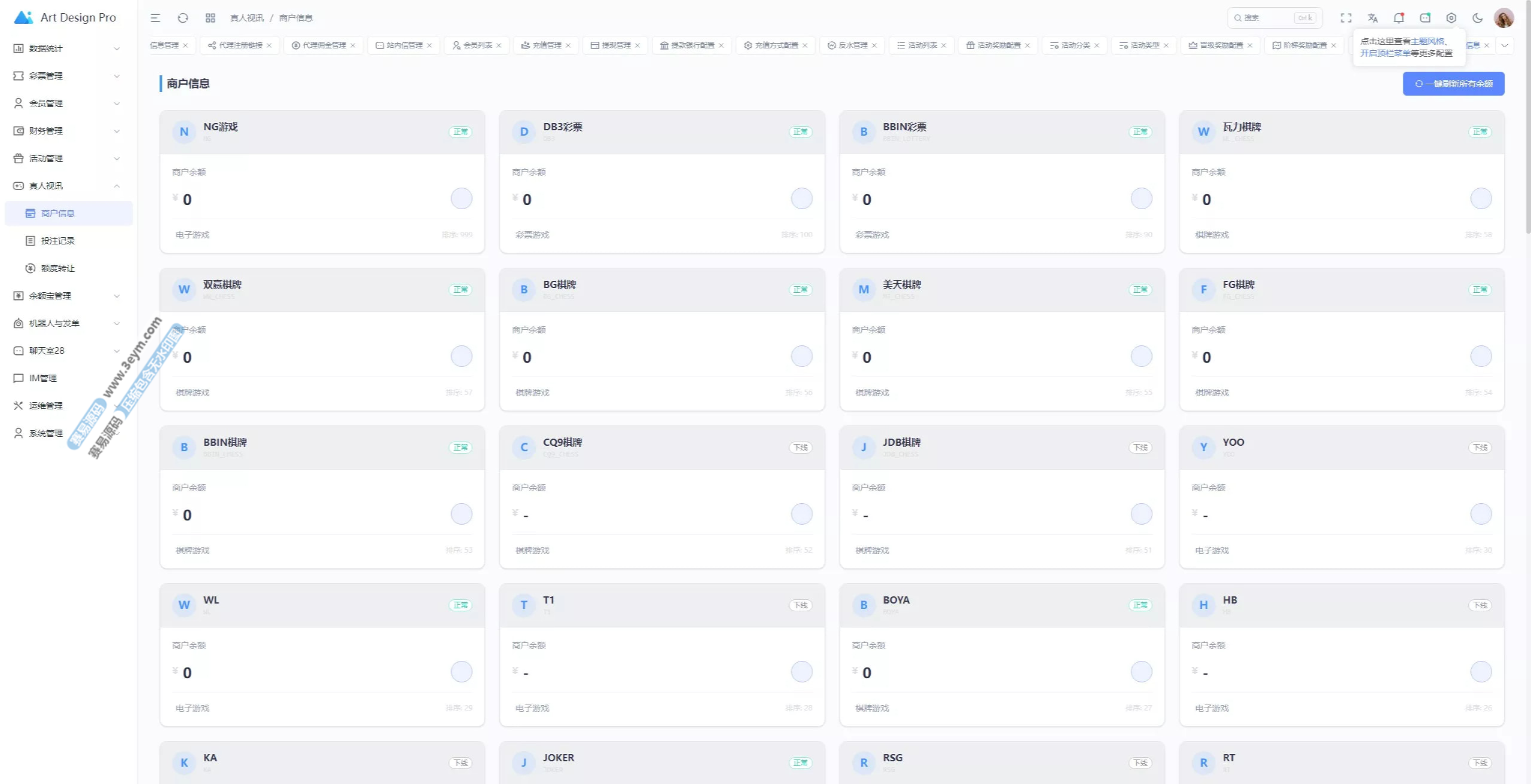 - 多彩种支持:体育盘、电子彩、真人、棋牌等