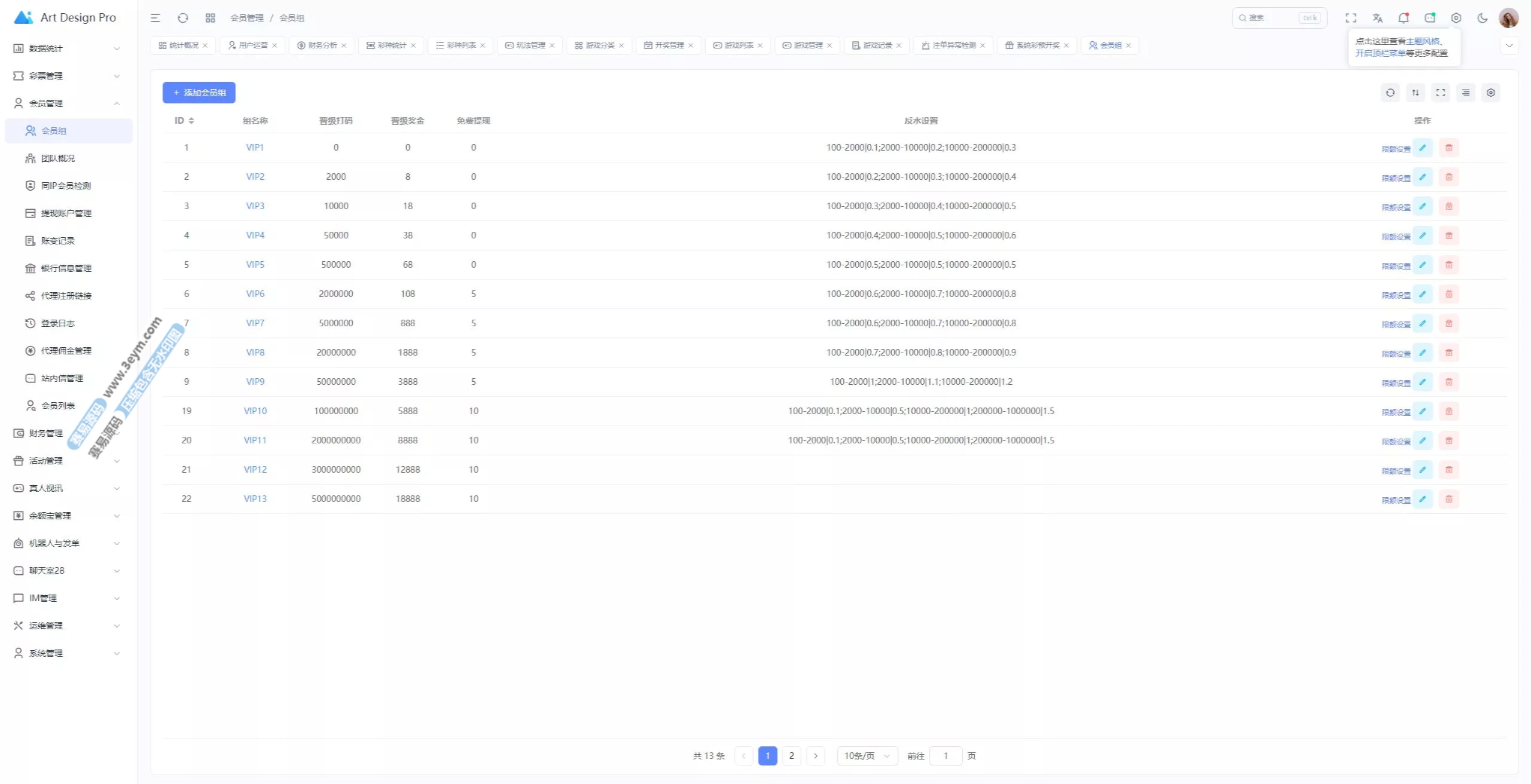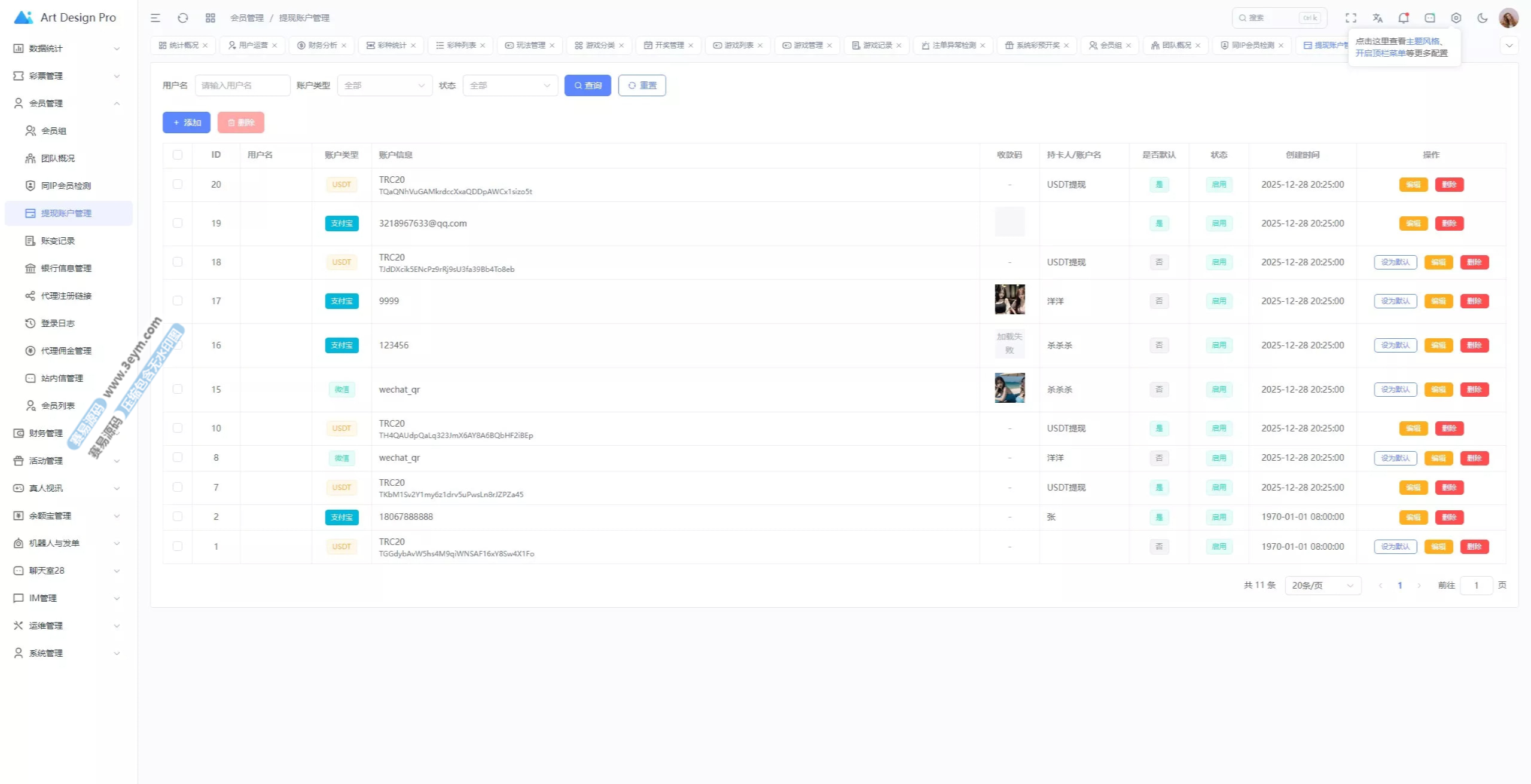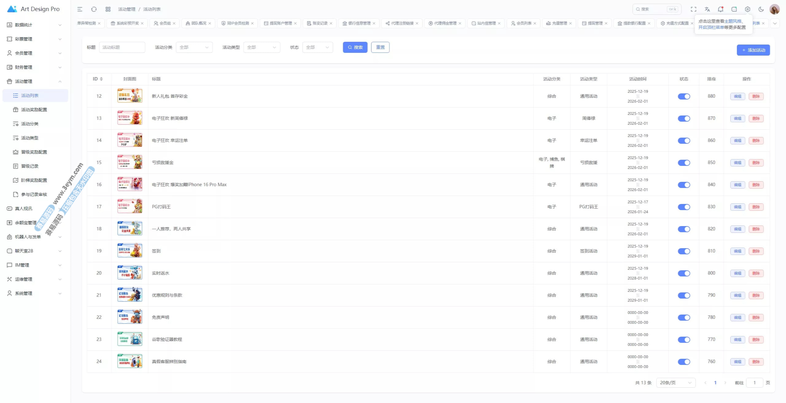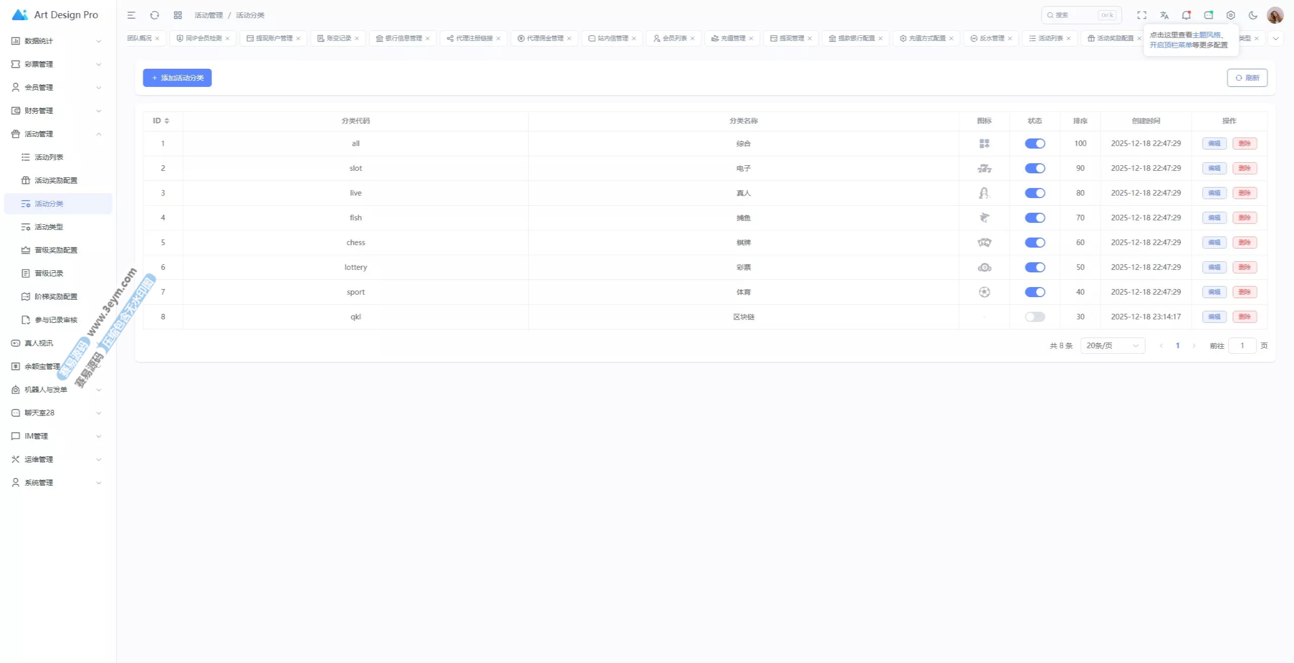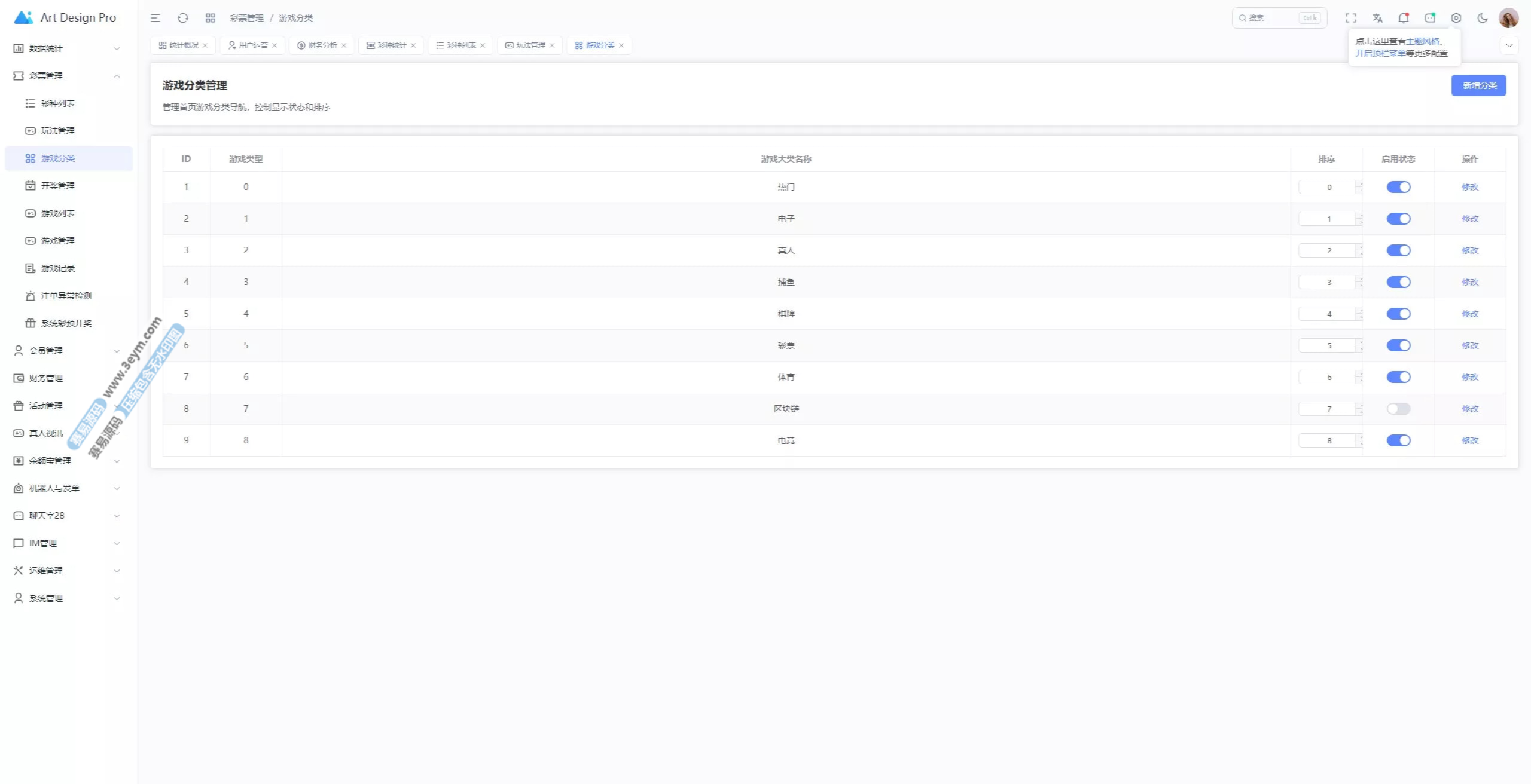 - 多彩种支持:体育盘、电子彩、真人、棋牌等