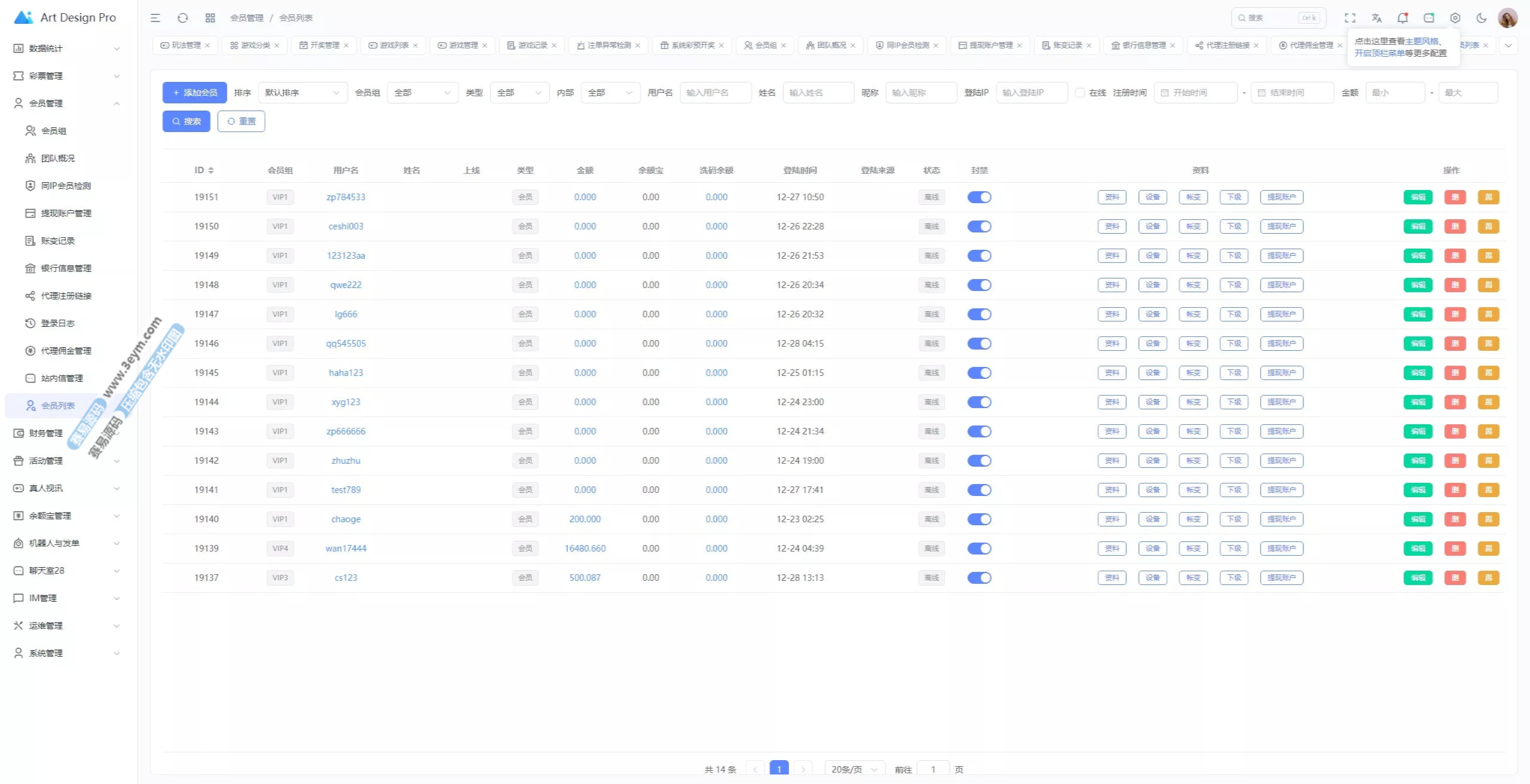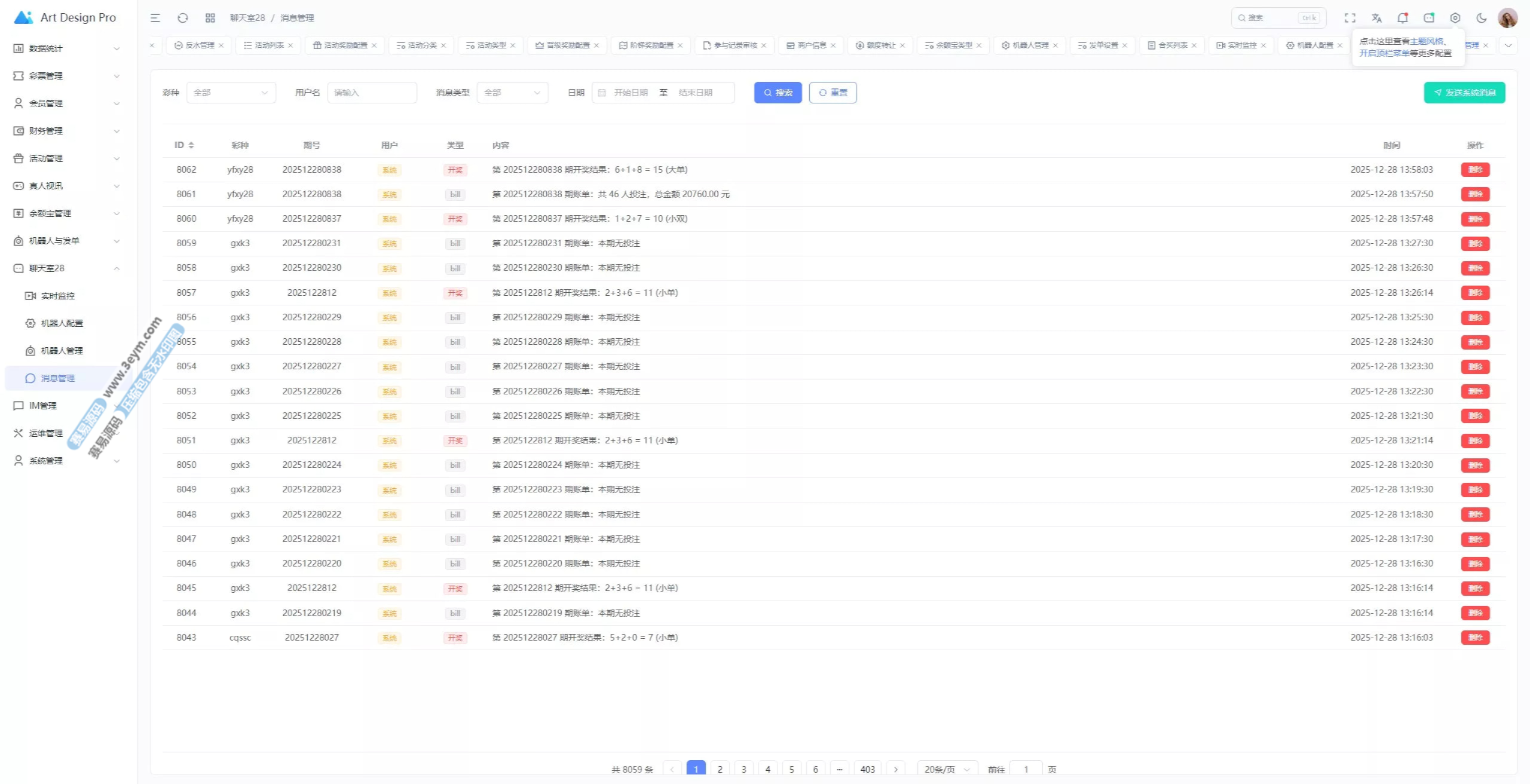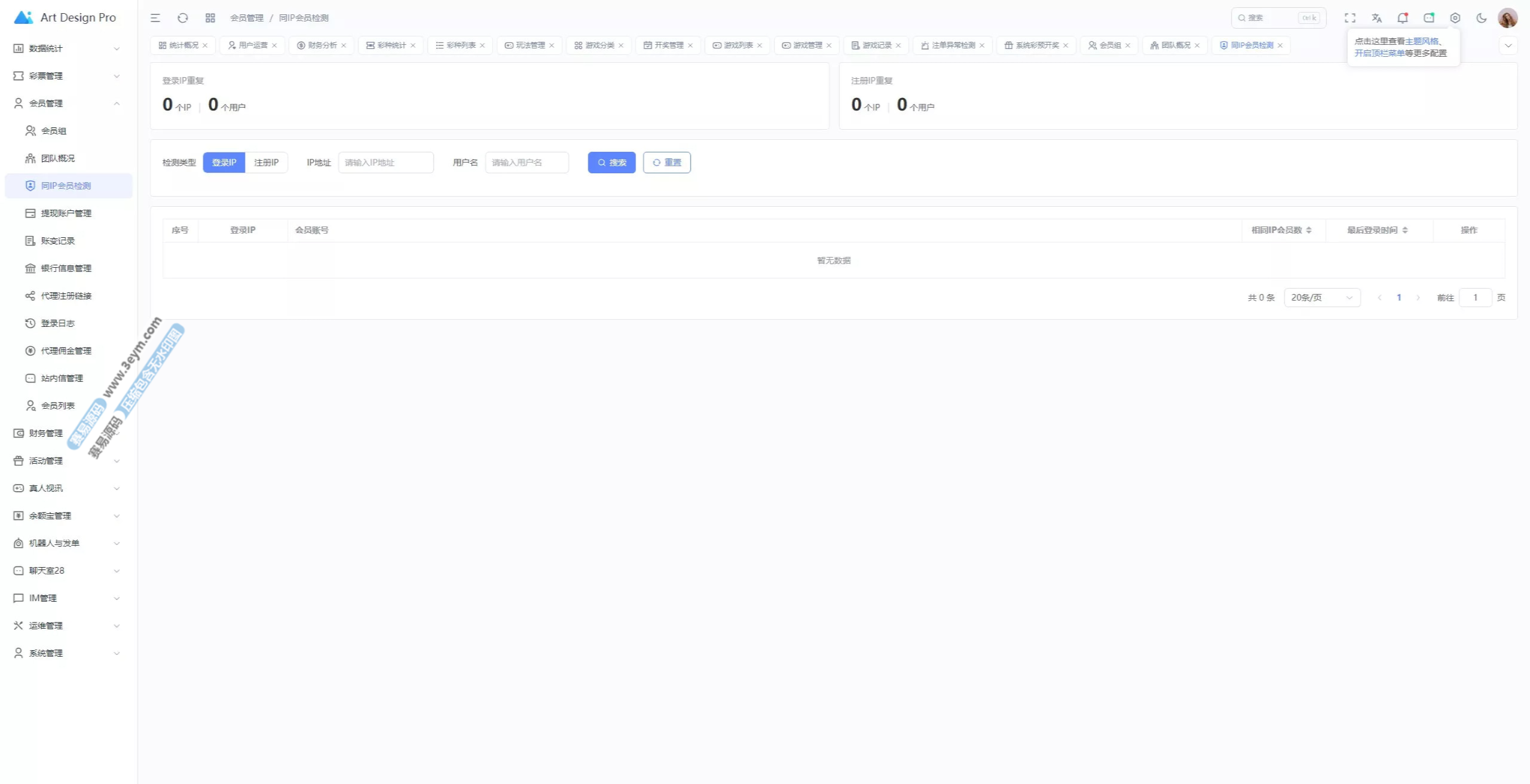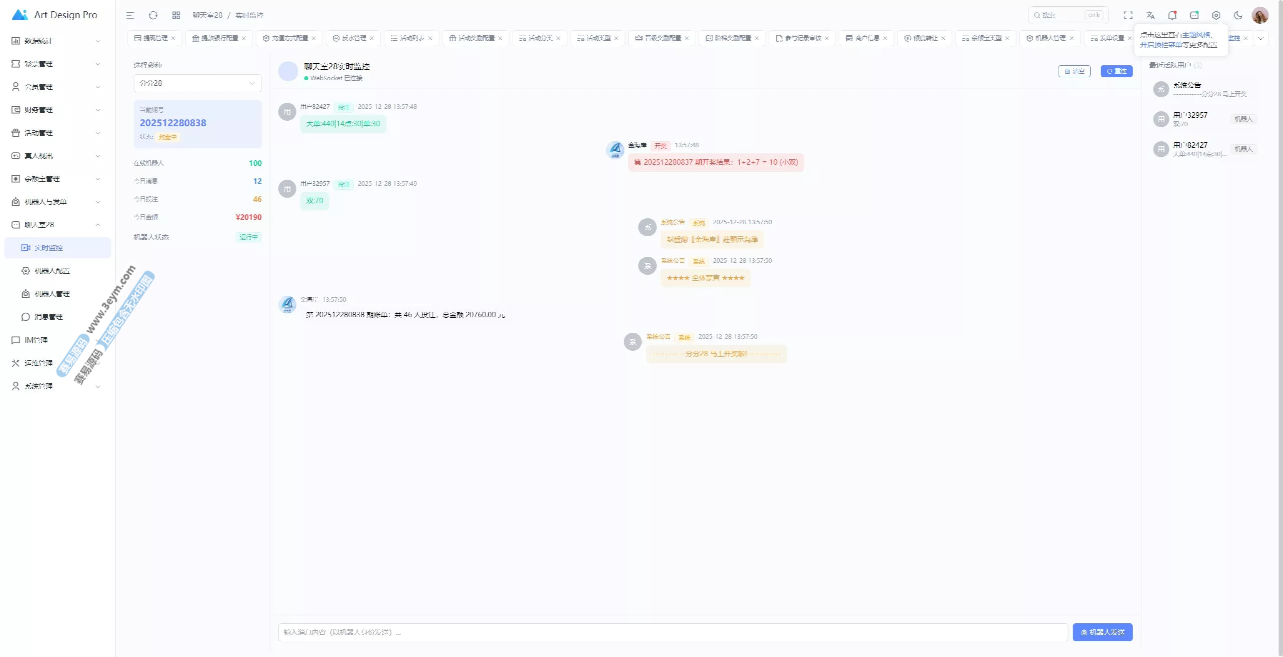 - 多彩种支持:体育盘、电子彩、真人、棋牌等
