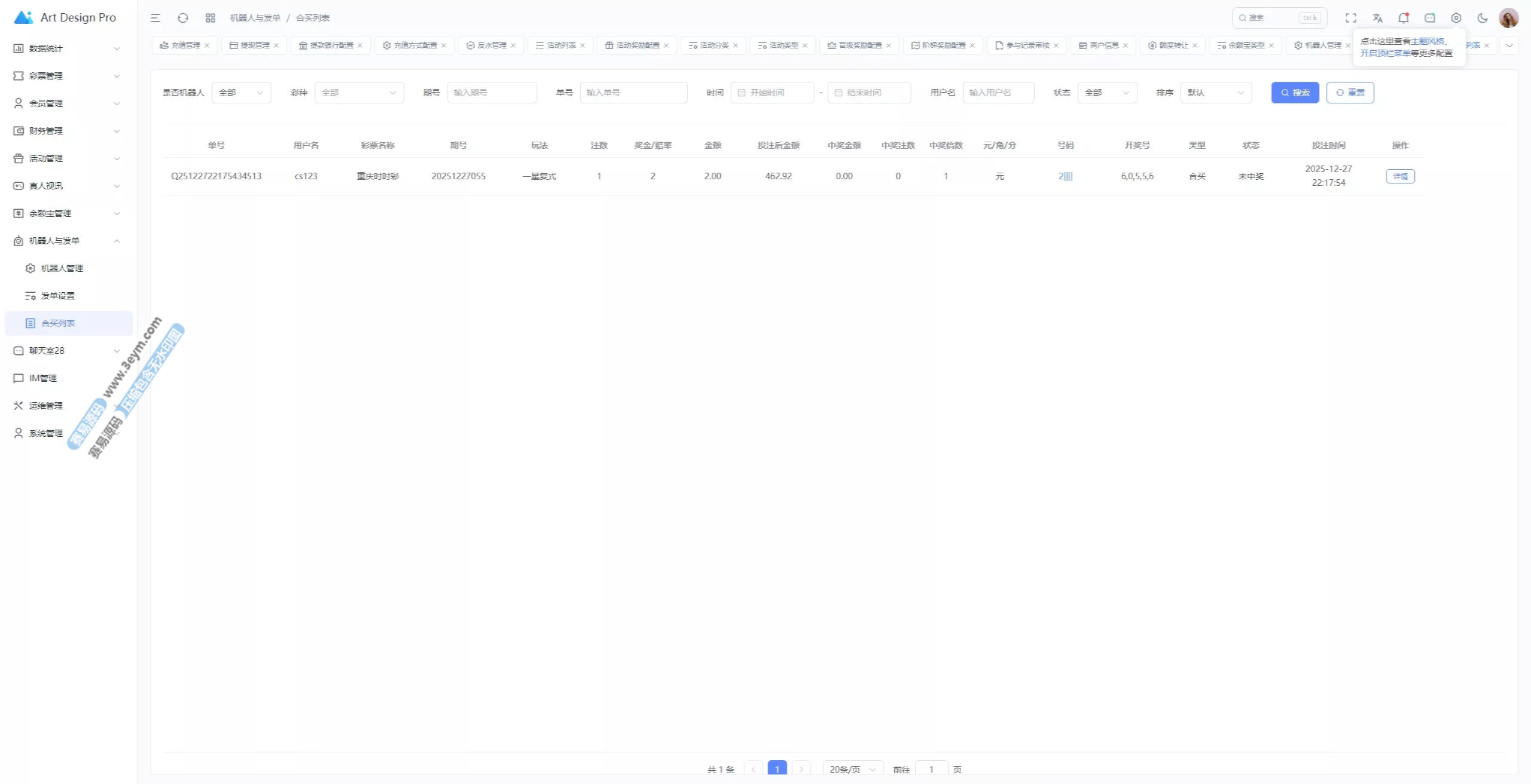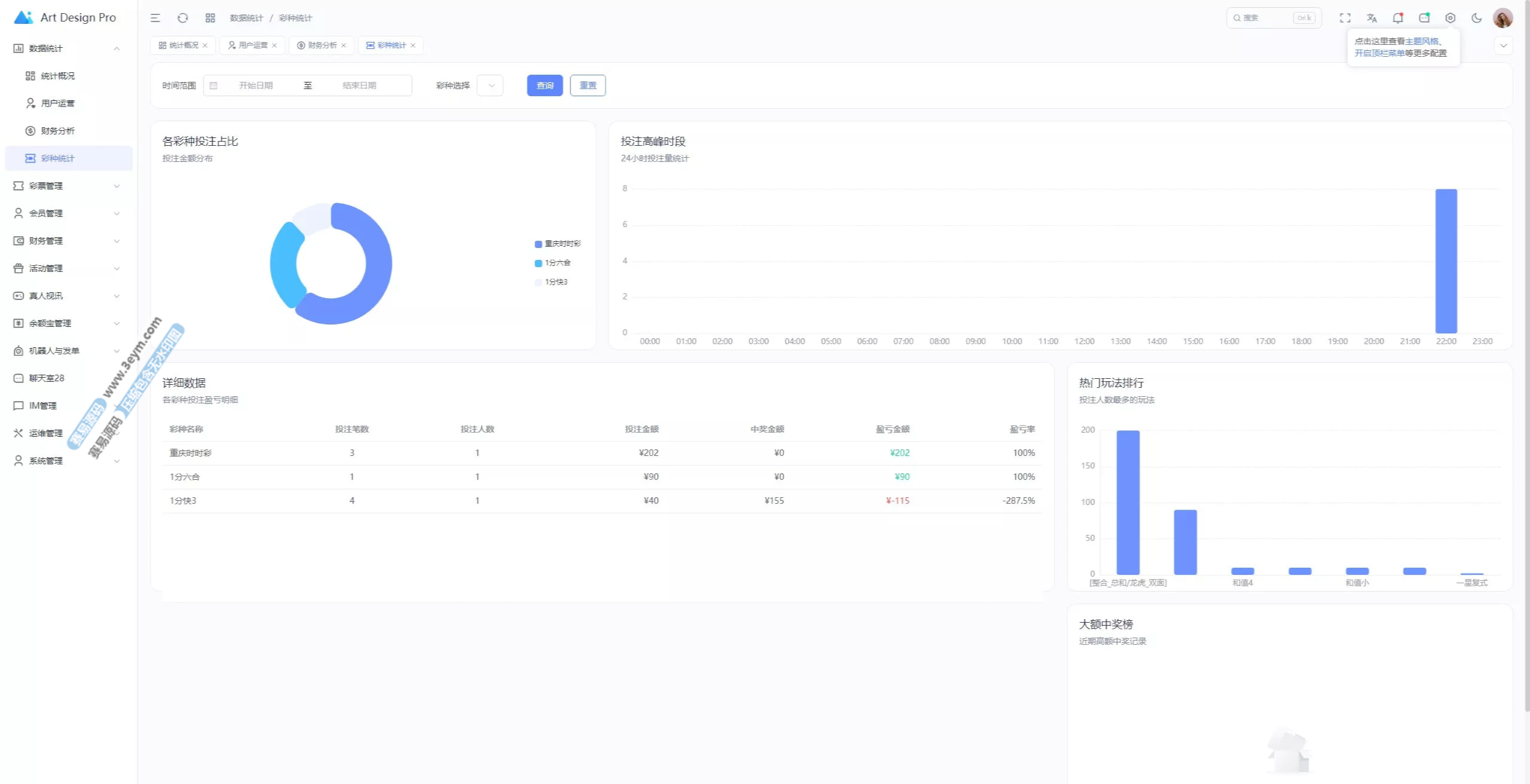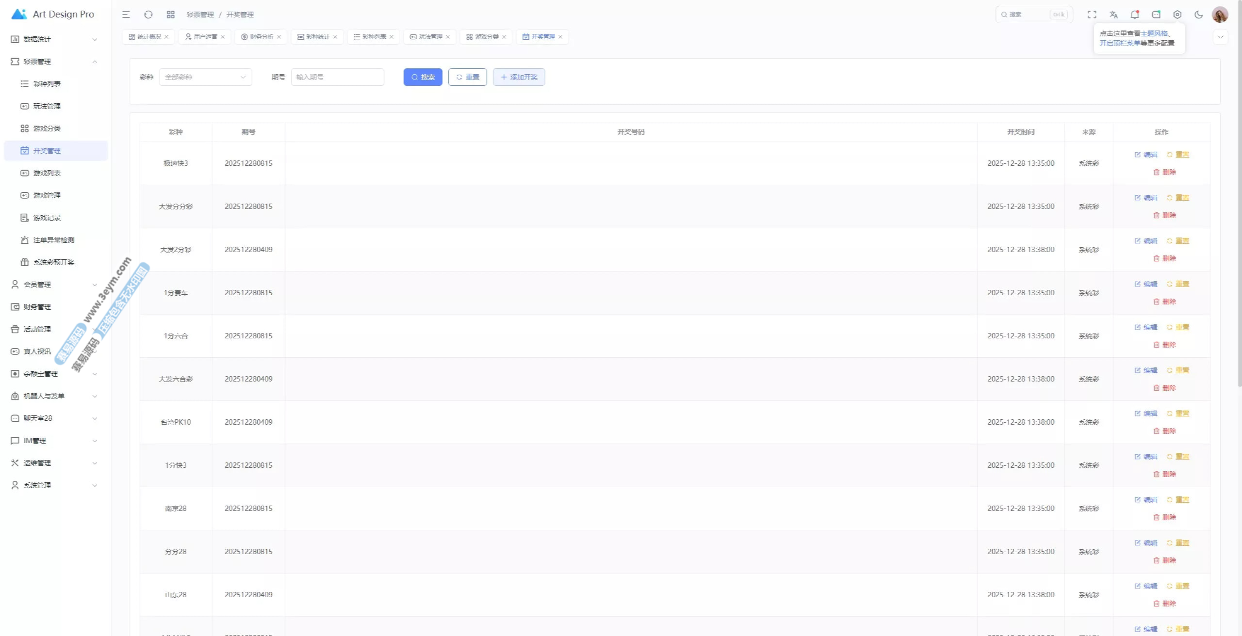 - 支持多彩种、多玩法综合盘