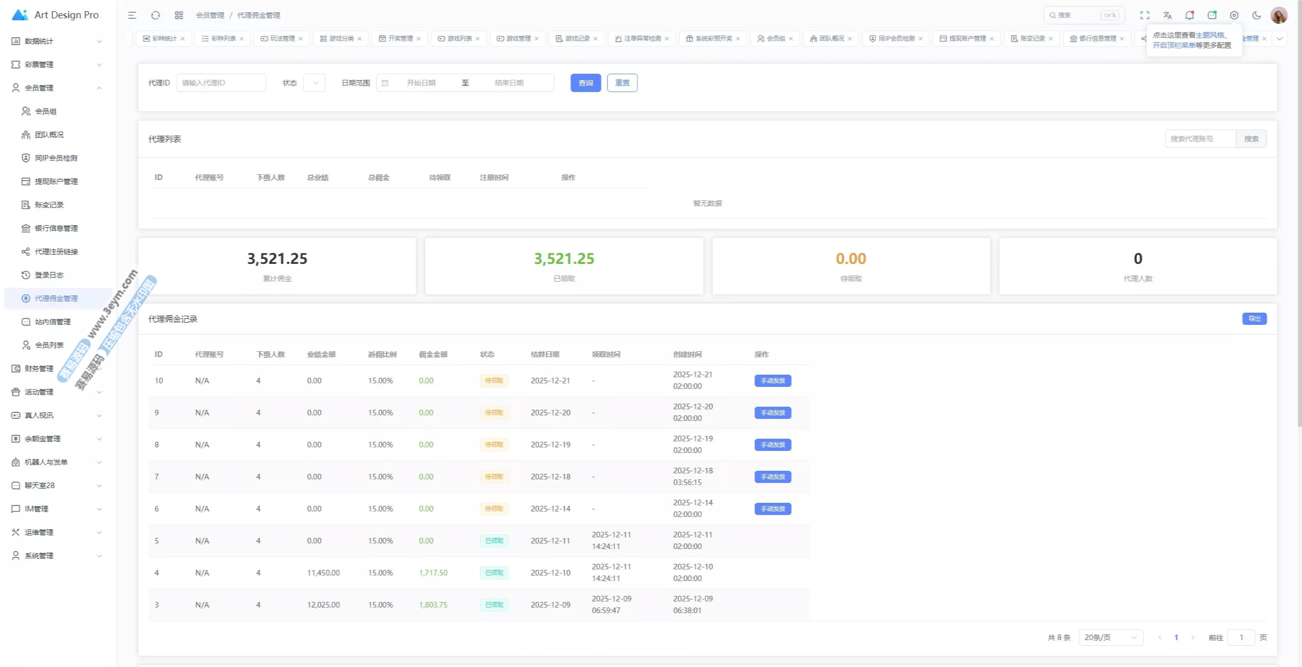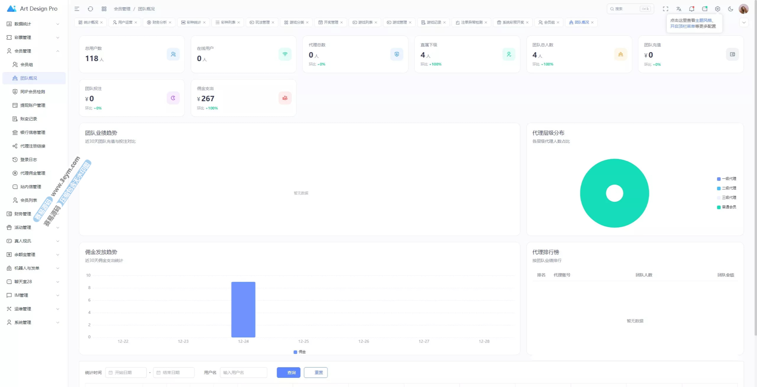 - 后台可管理团队业绩、代理数据