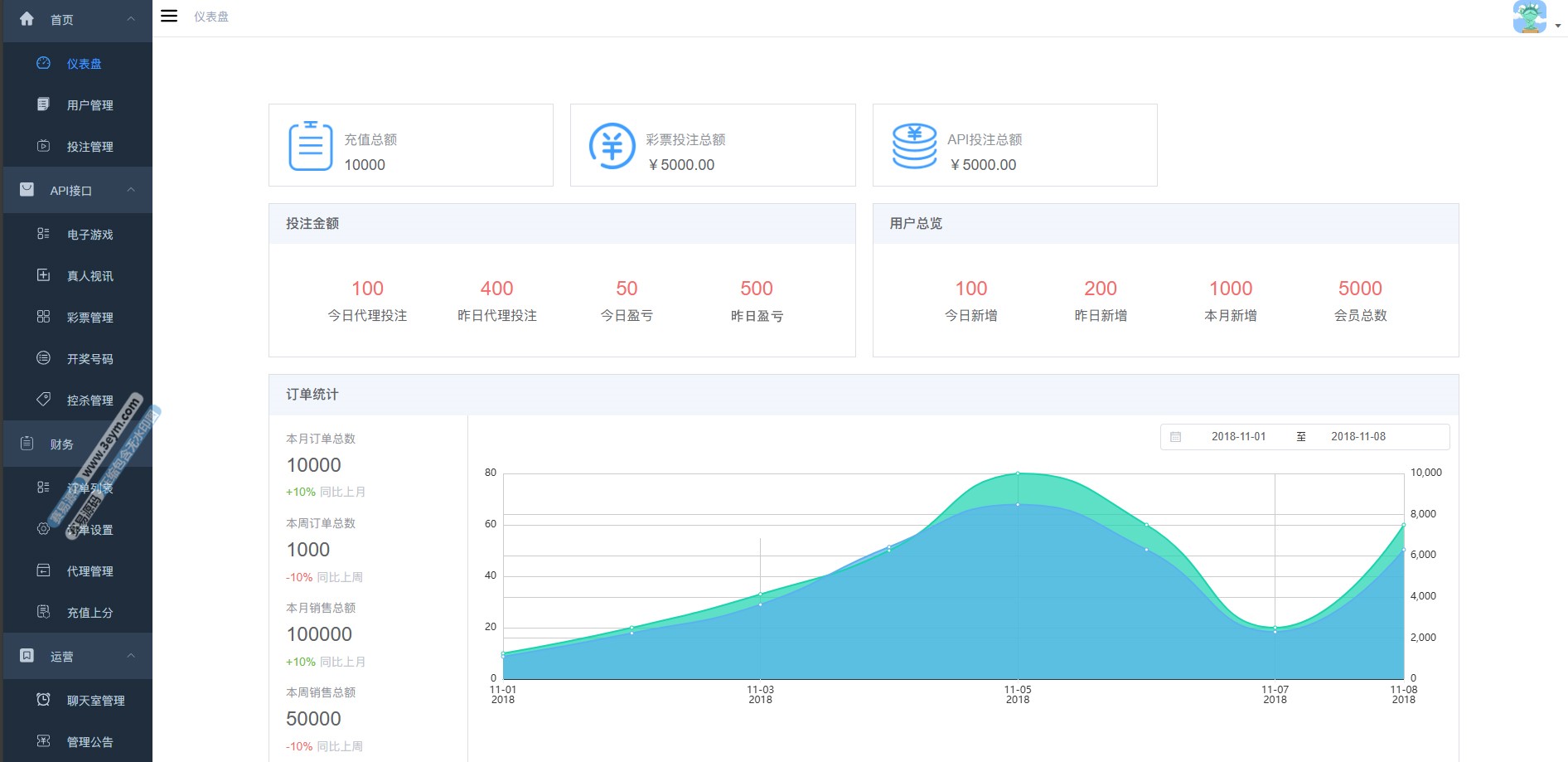 - 综合盘功能齐全:彩种、活动、会员、财务模块完善