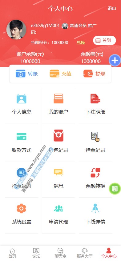 - 充值提现:支持 USDT / 微信 / 支付宝充值,后台可设置汇率与出款权限