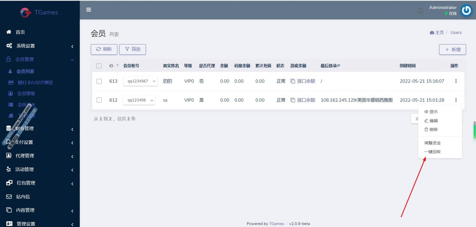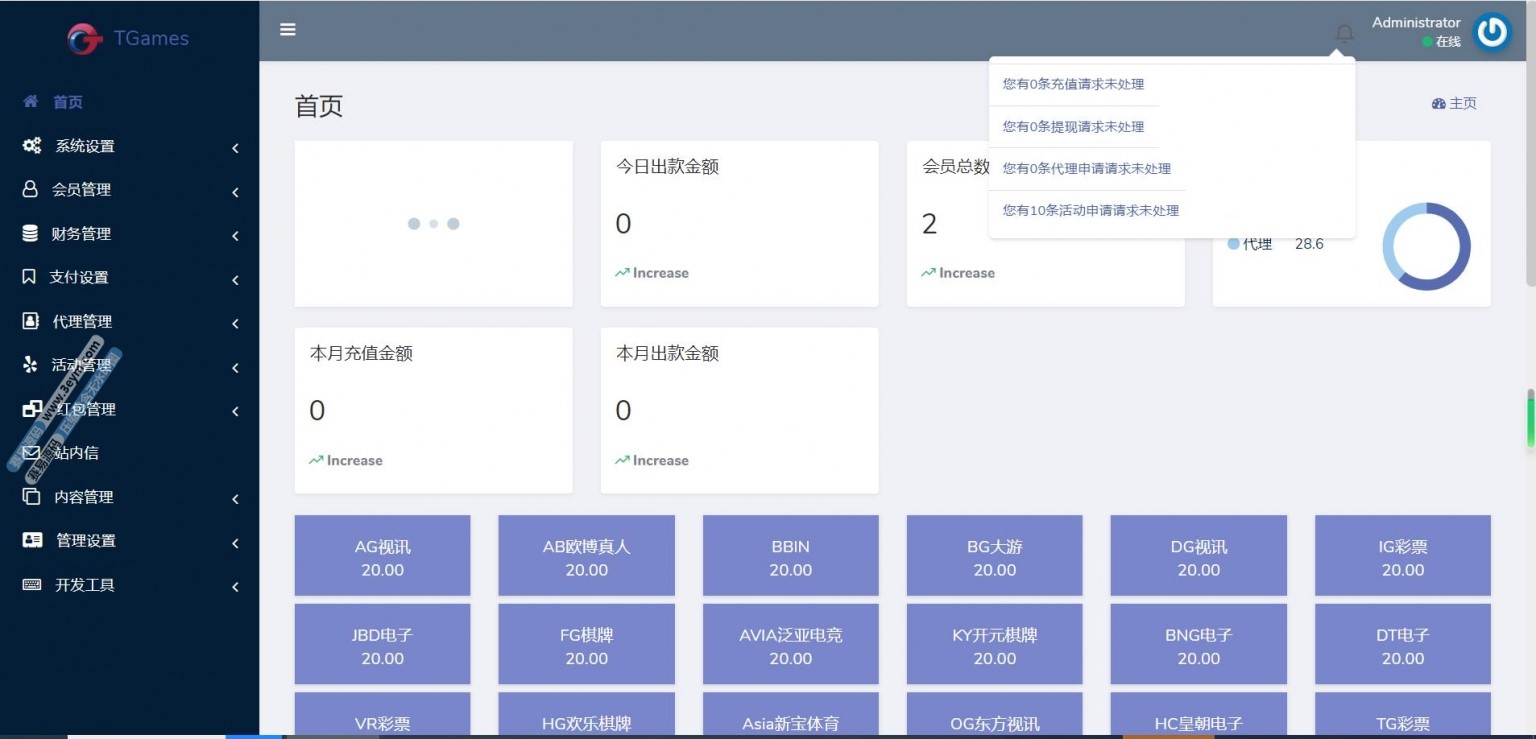 欧宝娱乐城源码后台功能完善,可以统一管理会员、游戏和财务。