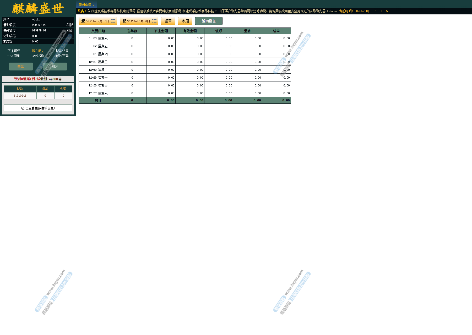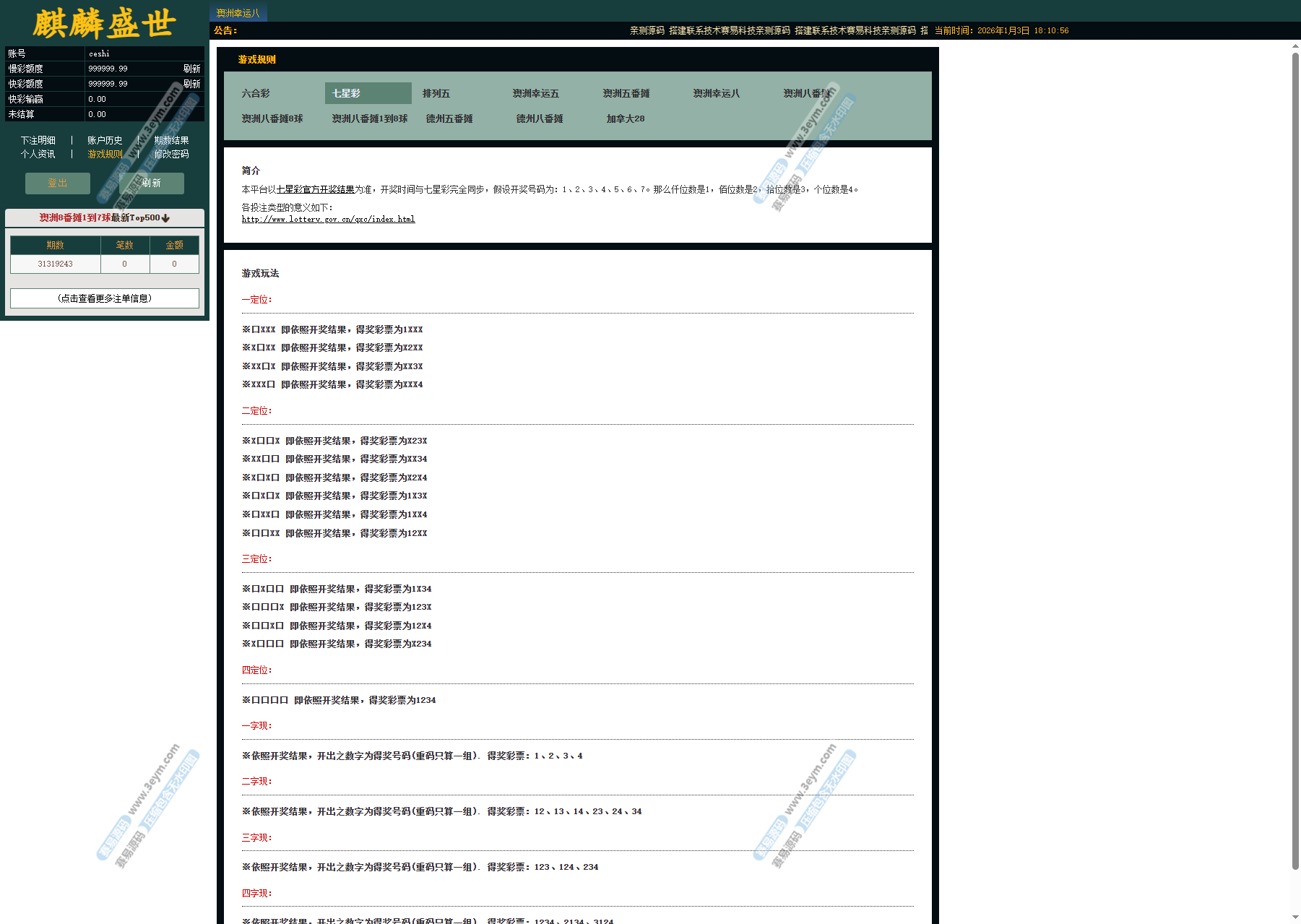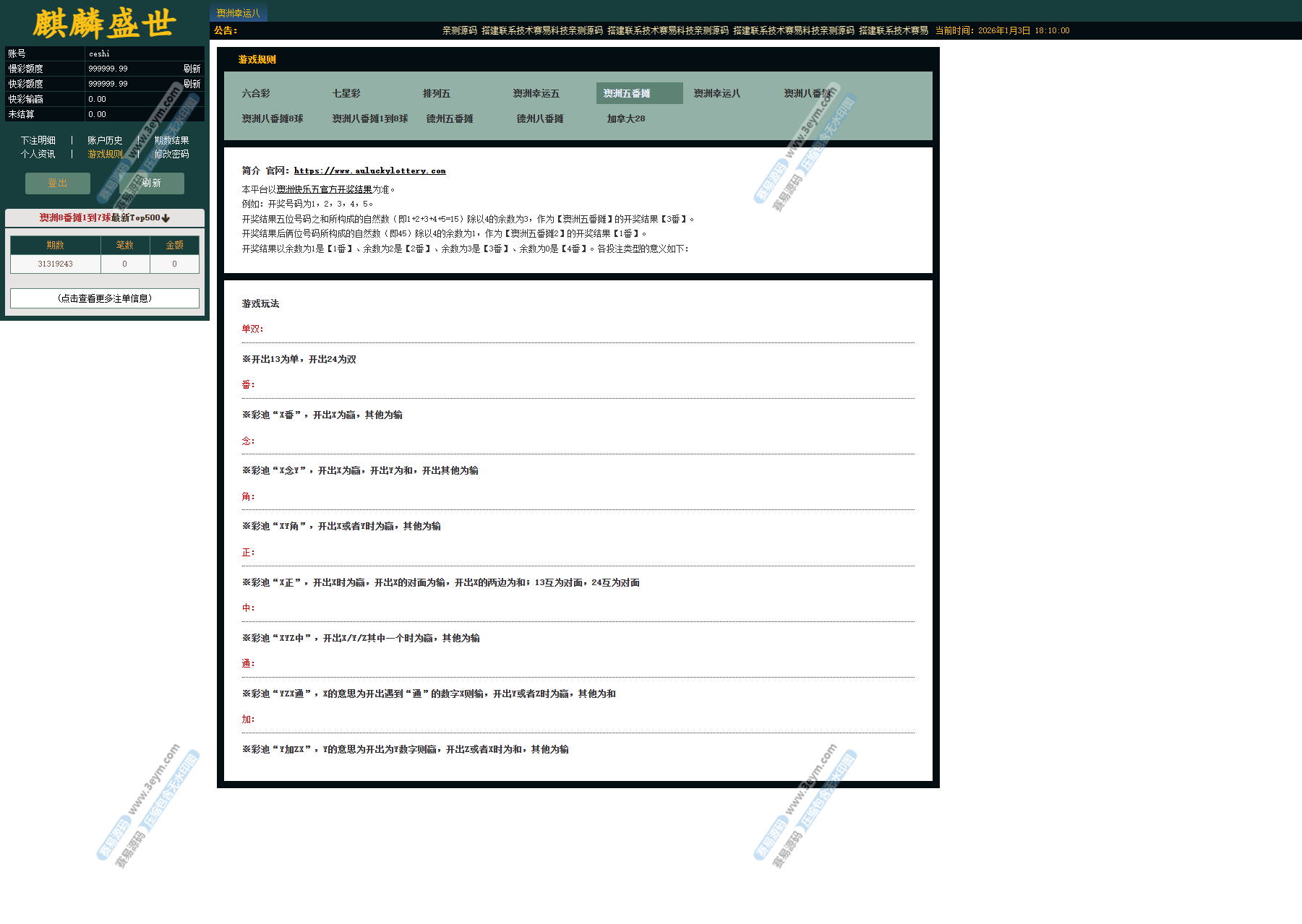 系统内已集成多种主流彩种,并支持翻摊类玩法: