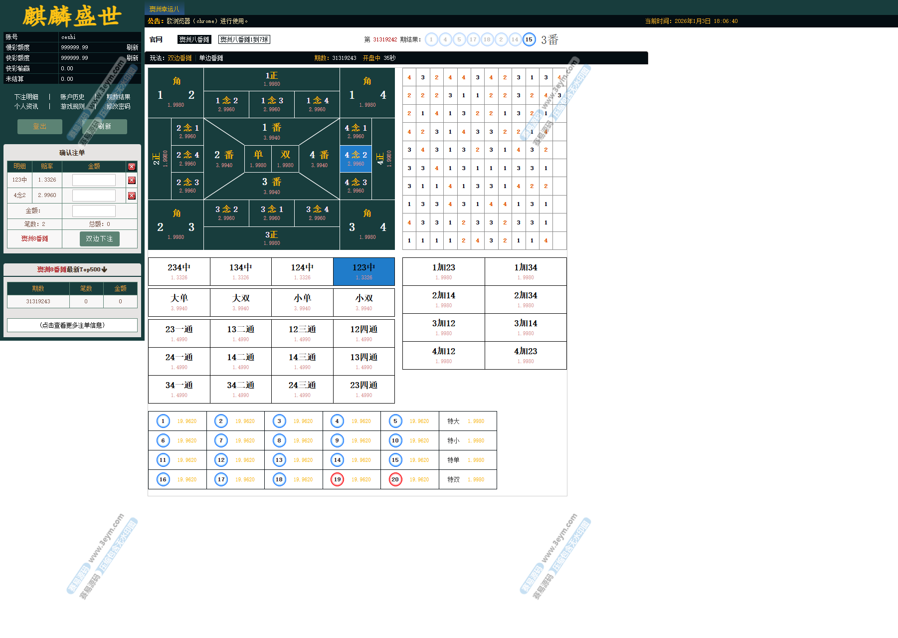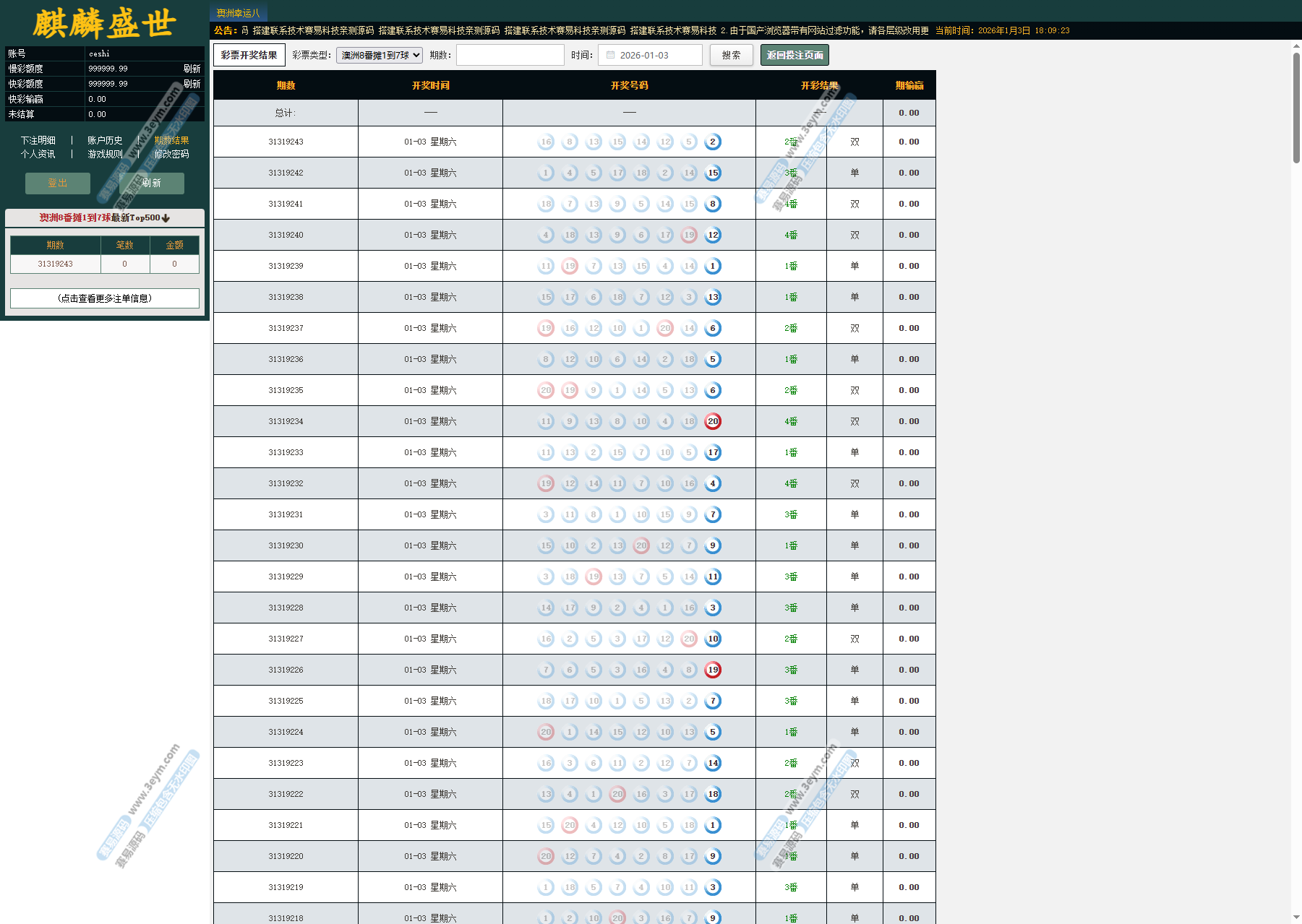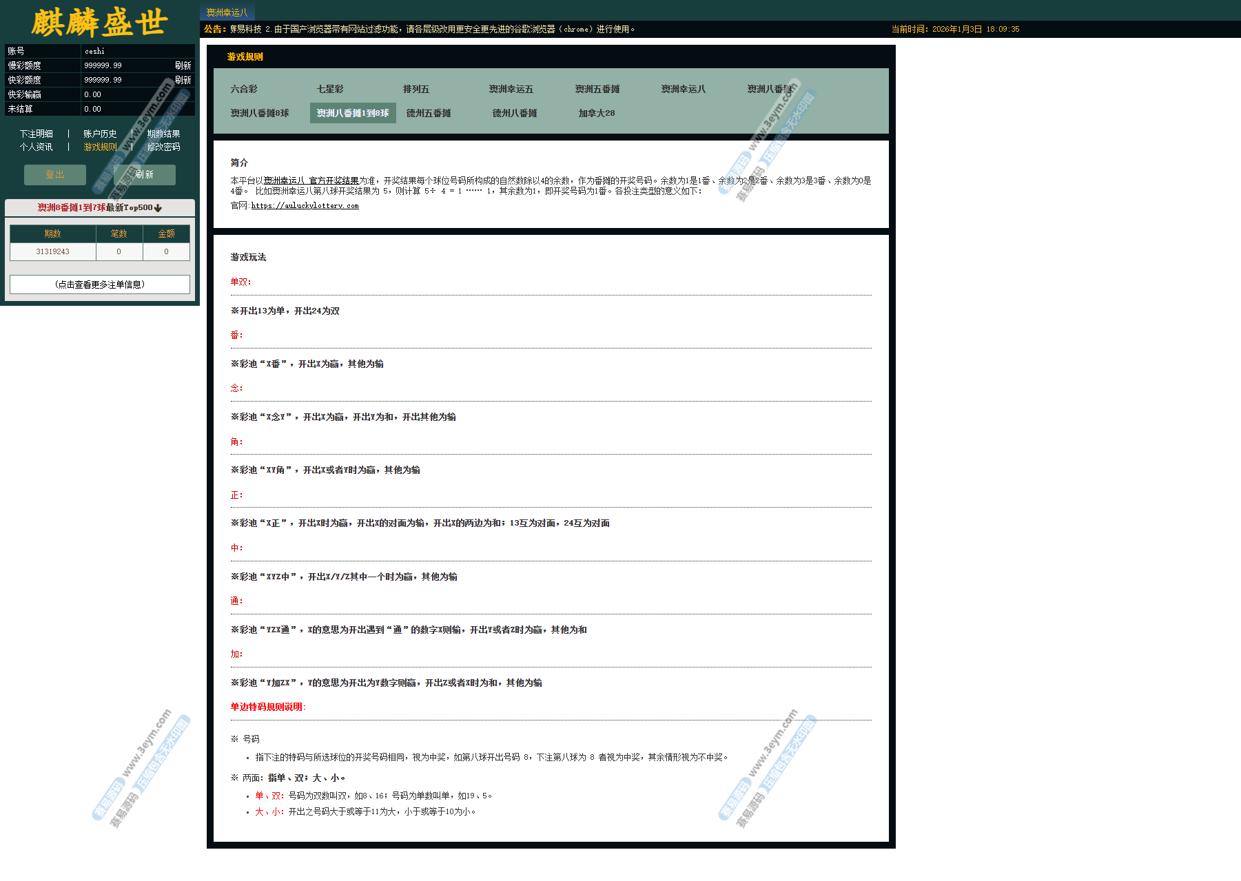 系统内已集成多种主流彩种,并支持翻摊类玩法: