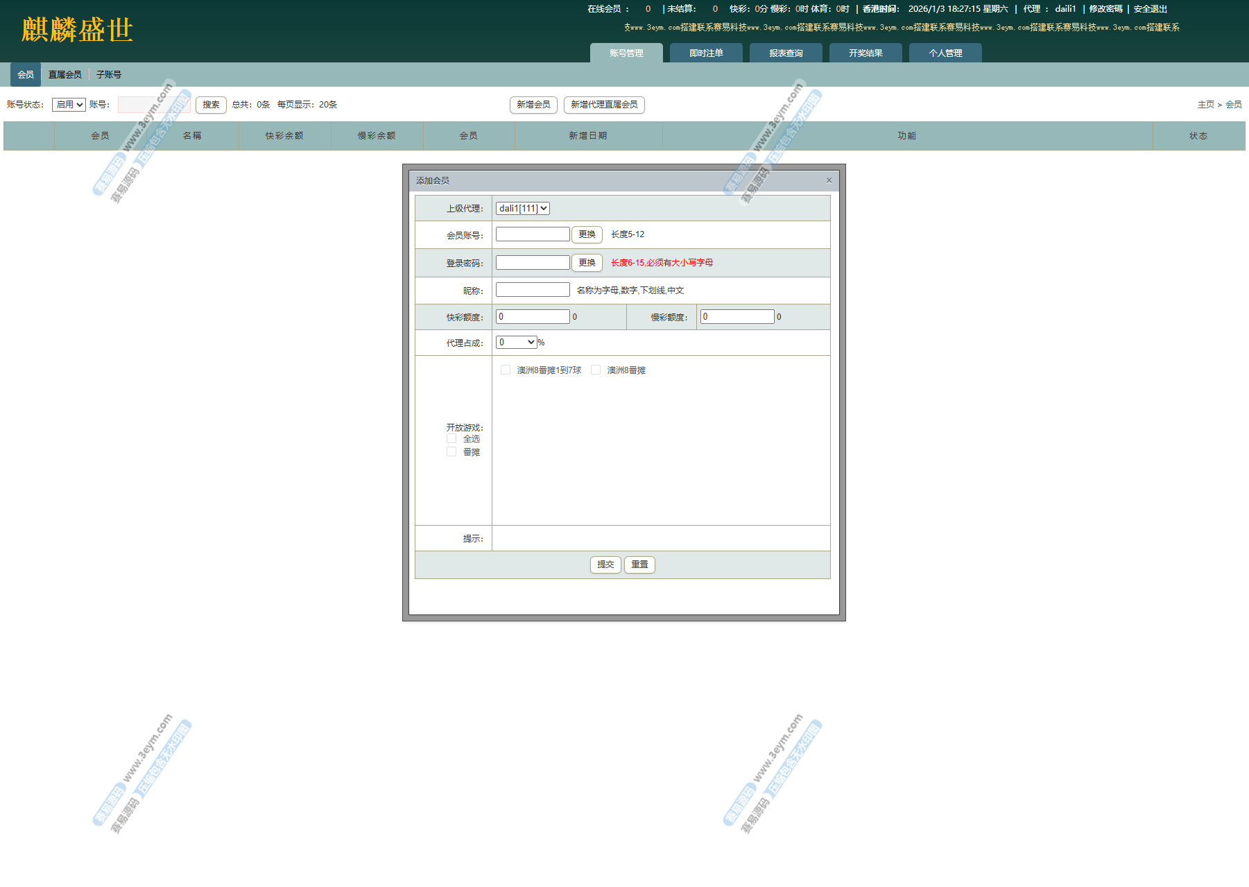 各层级权限清晰,支持 上级占成、退水比例、赔率差分 等参数独立配置,适合多层级推广与结算场景。
