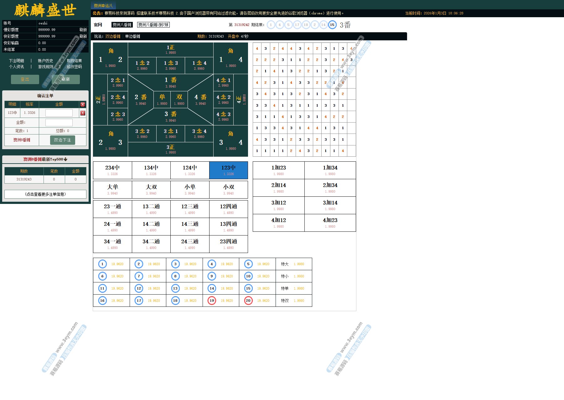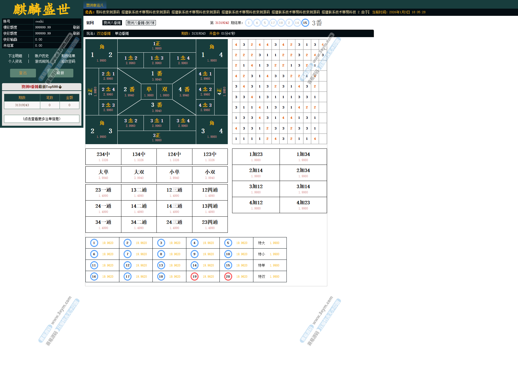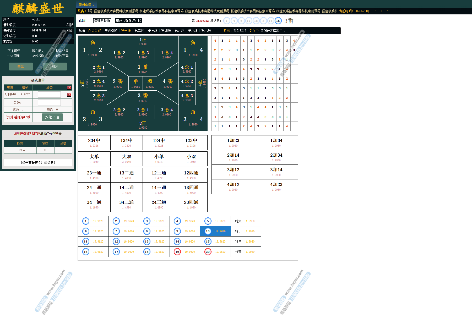 麒麟盛世澳洲幸运8信用盘源码,这玩意儿是专门给搞信用盘的人准备的,就是那种能真刀真枪上阵的系统。它厉害的地方在于,啥彩种、啥玩法都能一块儿跑,而且信用模式和现金模式都能玩得转。这套系统用起来也方便,手机和电脑随便切换,在哪儿用都一样顺手。总的来说,这套源码挺成熟的,适合那些想好好搞,有点推广和管理能力的平台。